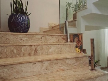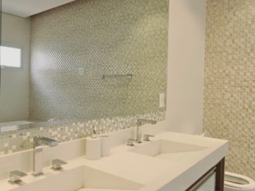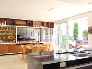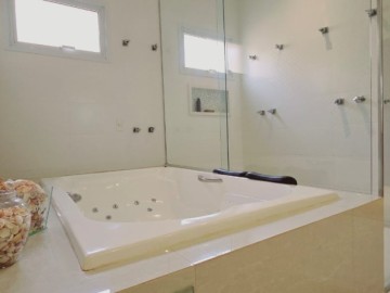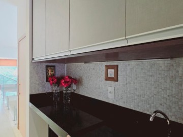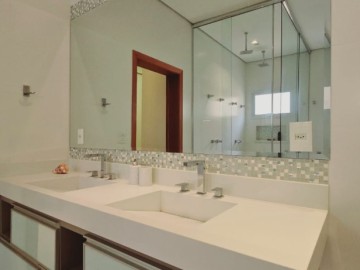 Pavimento superior: Elevador Panorâmico. Copa de apoio com armário planejado (pia, espaço para frigobar, gavetas, torneira e lixeira embutida). 4 Suítes, com closets amplos, sendo a suíte master com pia dupla e hidromassagem dupla.