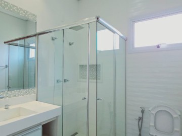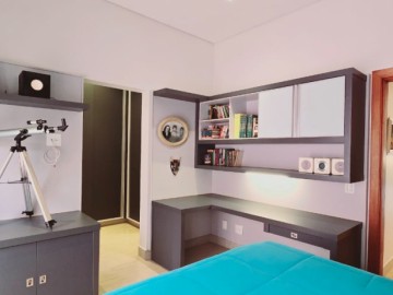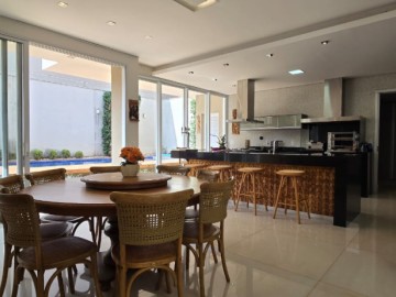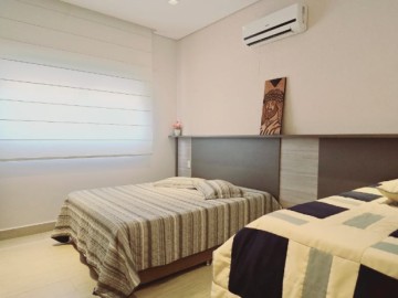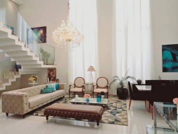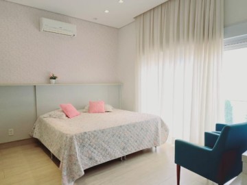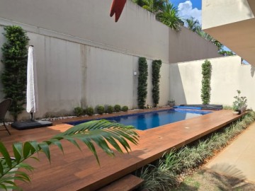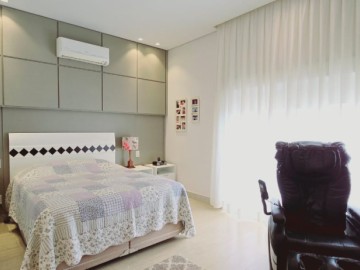 Diferenciais: Persianas elétricas blackout, ar condicionados e móveis planejados em todas as suítes. Cortinas em tecidos nobre em todas as janelas das suítes e na sala de estar. Automação Google nas áreas Gourmet, Piscina e Home TV (Rede Wifi MESH e Rede Cabeada). Rede Cabeada e Rede Wifi MESH no piso superior e inferior, sendo 3 unidades de Access Point cobrindo toda área residencial, otimizando a conexão de internet.