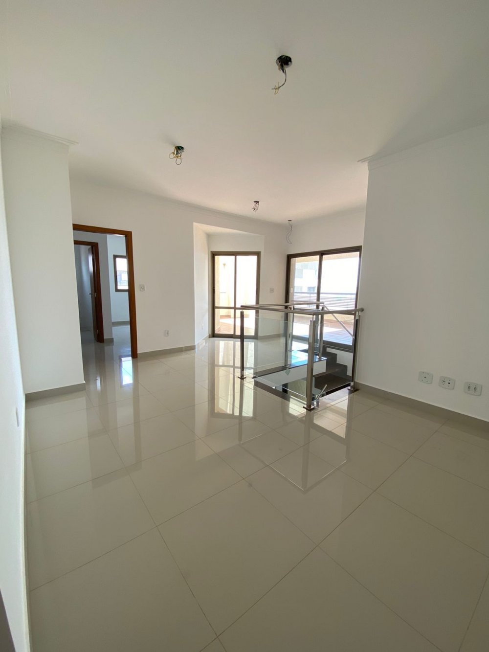 239 m² - Parte inferior: Hall de entrada. Sala 3 ambientes. Cozinha, área de serviço com despensa. 2 suítes (1 dos banheiros também é o social). Sacada ampla. Parte superior (o elevador também acessa esse nível): Sala íntima. 2 suítes. Varanda gourmet com churrasqueira a carvão e solarium.