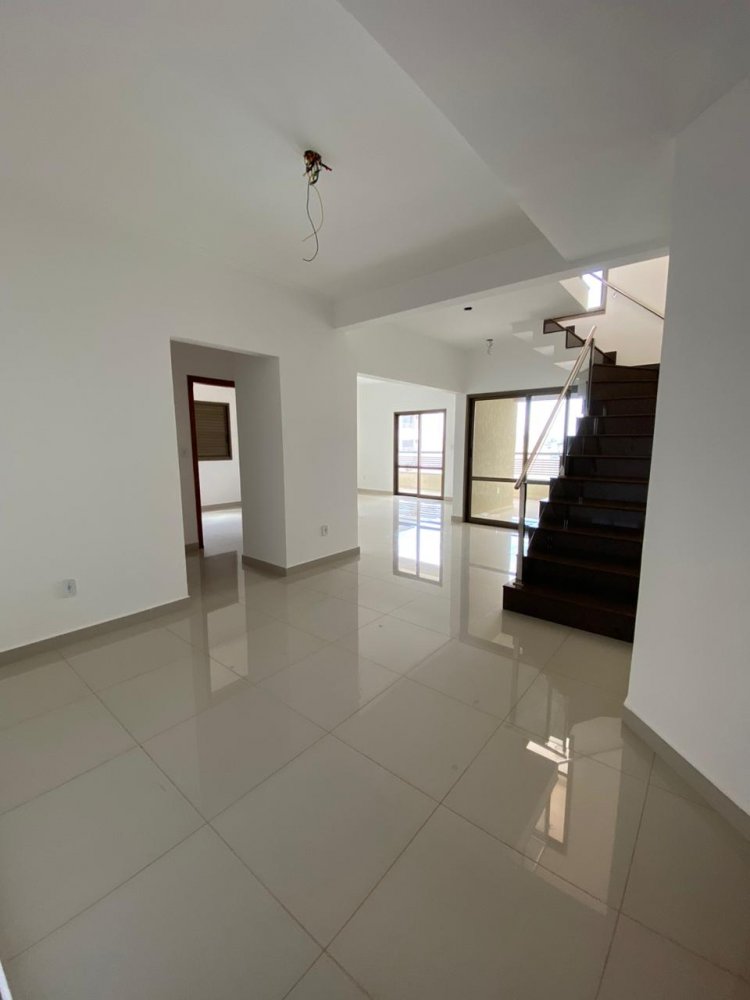 239 m² - Parte inferior: Hall de entrada. Sala 3 ambientes. Cozinha, área de serviço com despensa. 2 suítes (1 dos banheiros também é o social). Sacada ampla. Parte superior (o elevador também acessa esse nível): Sala íntima. 2 suítes. Varanda gourmet com churrasqueira a carvão e solarium.