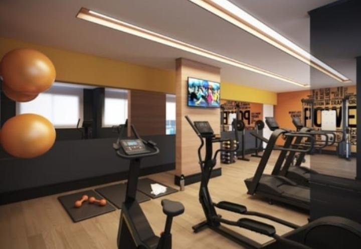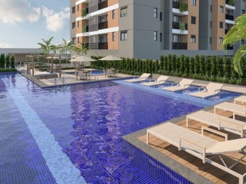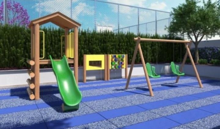 Lazer completo: piscina, spa, academia, salão de festas, espaço churrasco, sala de reuniões, play kids e quadra poliesportiva. Portaria 24h.