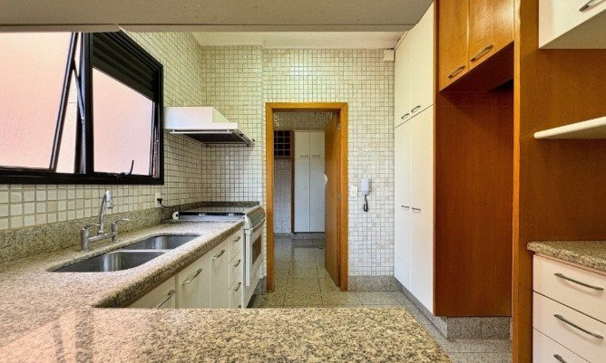 Confortável sala de TV. Varanda espaçosa. 3 Suítes completas, sendo 1 Master com closet e um amplo banheiro com banheira de hidromassagem. Rouparia e armários planejados de alto padrão em todos os ambientes.