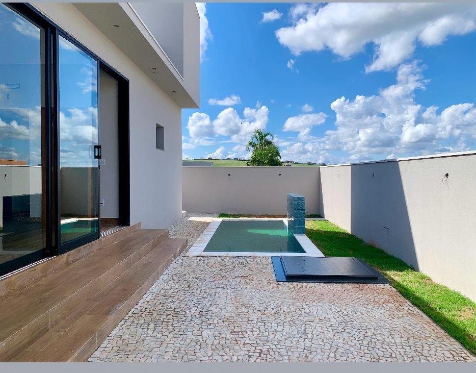 Garagem para 4 carros (2 cobertos e 2 descobertos). Sala 2 ambientes com pé direito alto. Escritório. Lavabo. Cozinha gourmet com churrasqueira à gás. Área de serviço. Despensa. 4 suítes, todas com armários. Piscina de alvenaria (iluminação, aquecimento com trocador de calor e hidromassagem), vestiário com chuveiro.