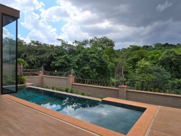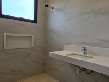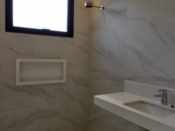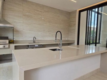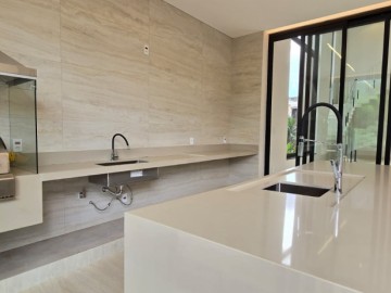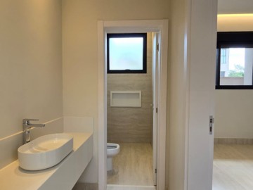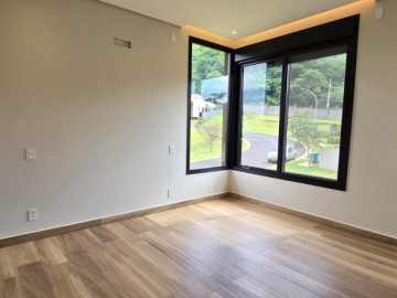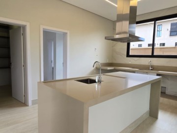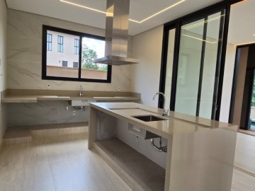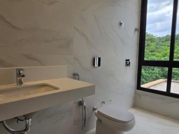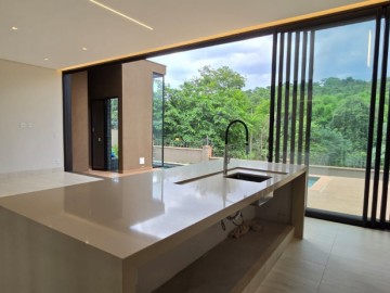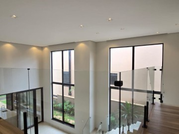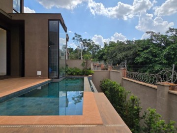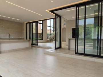 4 vagas, sendo 2 cobertas. Hall de entrada. Sala 2 ambientes com pé direito duplo. Escritório. Lavabo. Cozinha com ilha em quartzo. Ampla despensa. Lavanderia com banheiro de funcionários. 5 suítes, sendo uma no térreo e uma master com closet e banheiro sr e sra com hidromassagem. Varanda gourmet com churrasqueira, além de uma bela vsita livre. Área externa com sauna, piscina aquecida em pastilha com hidromassagem, vestiário e iluminação, além do paisagismo. Entregue com janelas automatizadas e preparação de: energia fotovoltaica, elevador e automação.