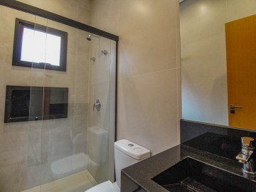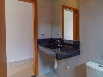 Sala 2 ambientes (jantar e TV). Lavabo com design arrojado e vista para o jardim. Cozinha com ilha e coifa, separada do gourmet. Área de serviço com acesso externo e interno. 3 suítes. Área gourmet com churrasqueira. Piscina aquecida e amplo espaço externo.