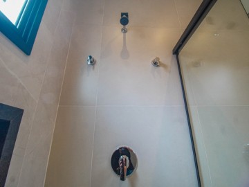 Revestimento de pedra na fachada; Piscina aquecida; Pé direito duplo na sala; Bancadas em granito nos banheiros; Arquitetura moderna da fachada com viga em balanço; Infraestrutura para energia fotovoltaica; Aquecimento dos chuveiros e torneiras através de boiler e placa solares.