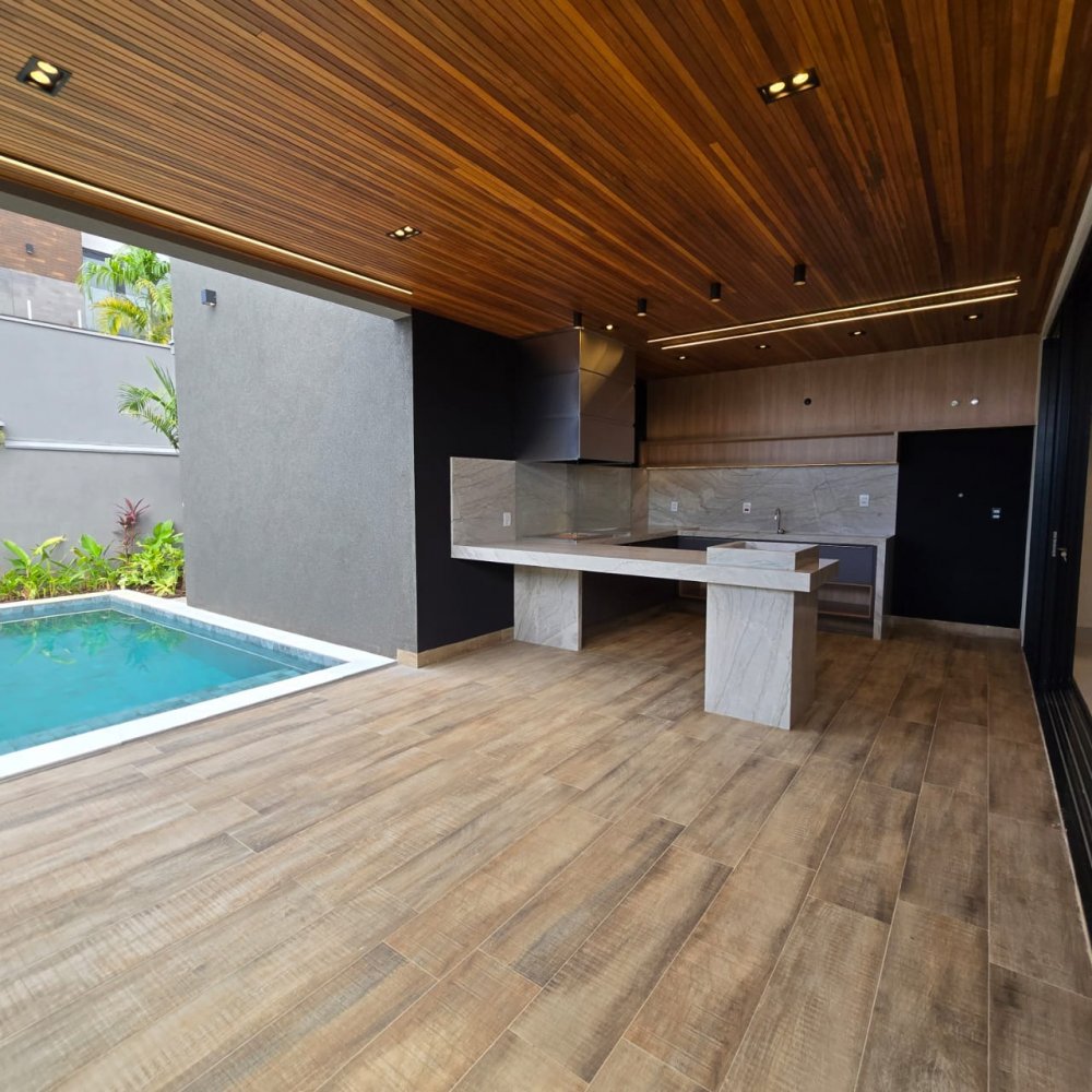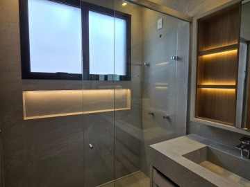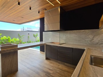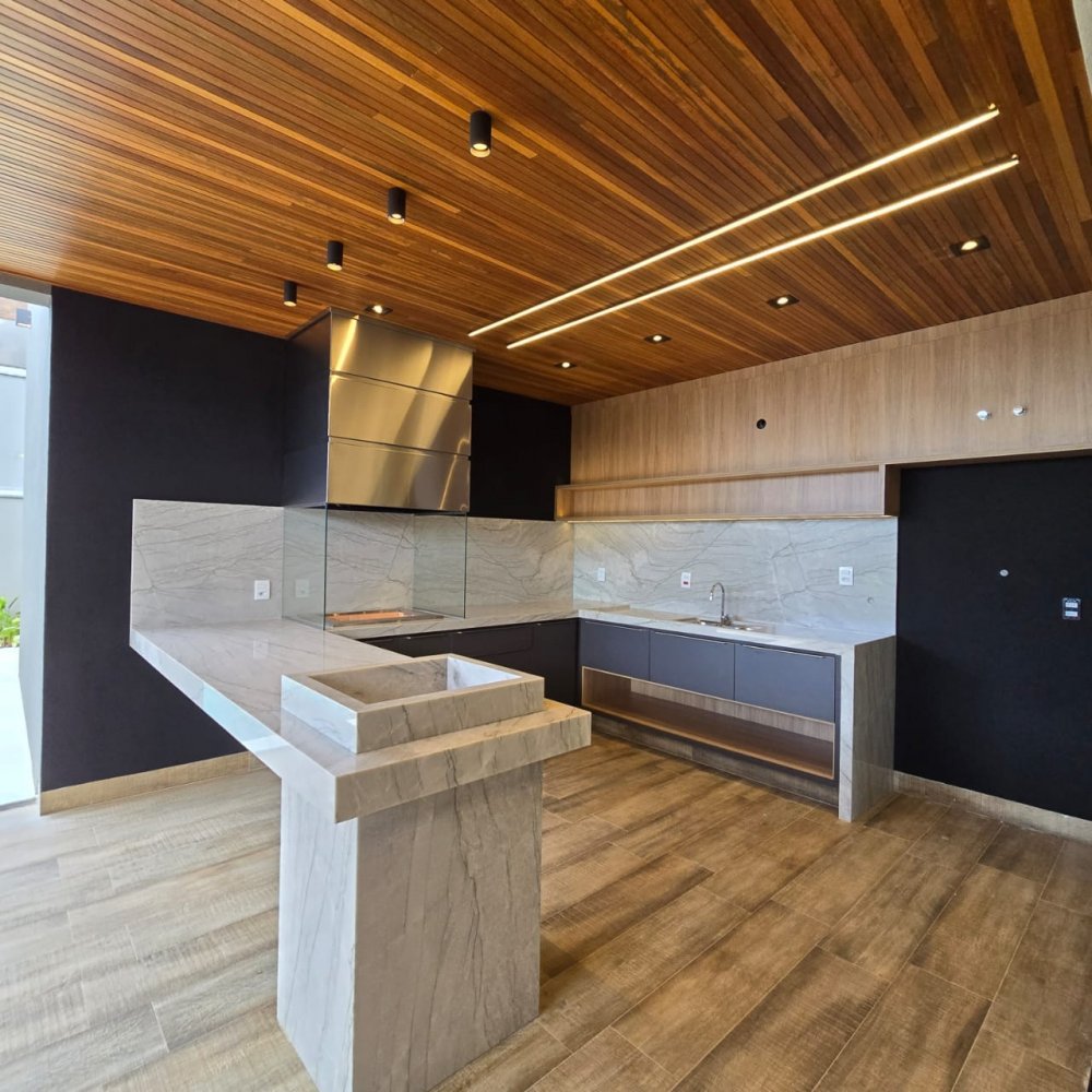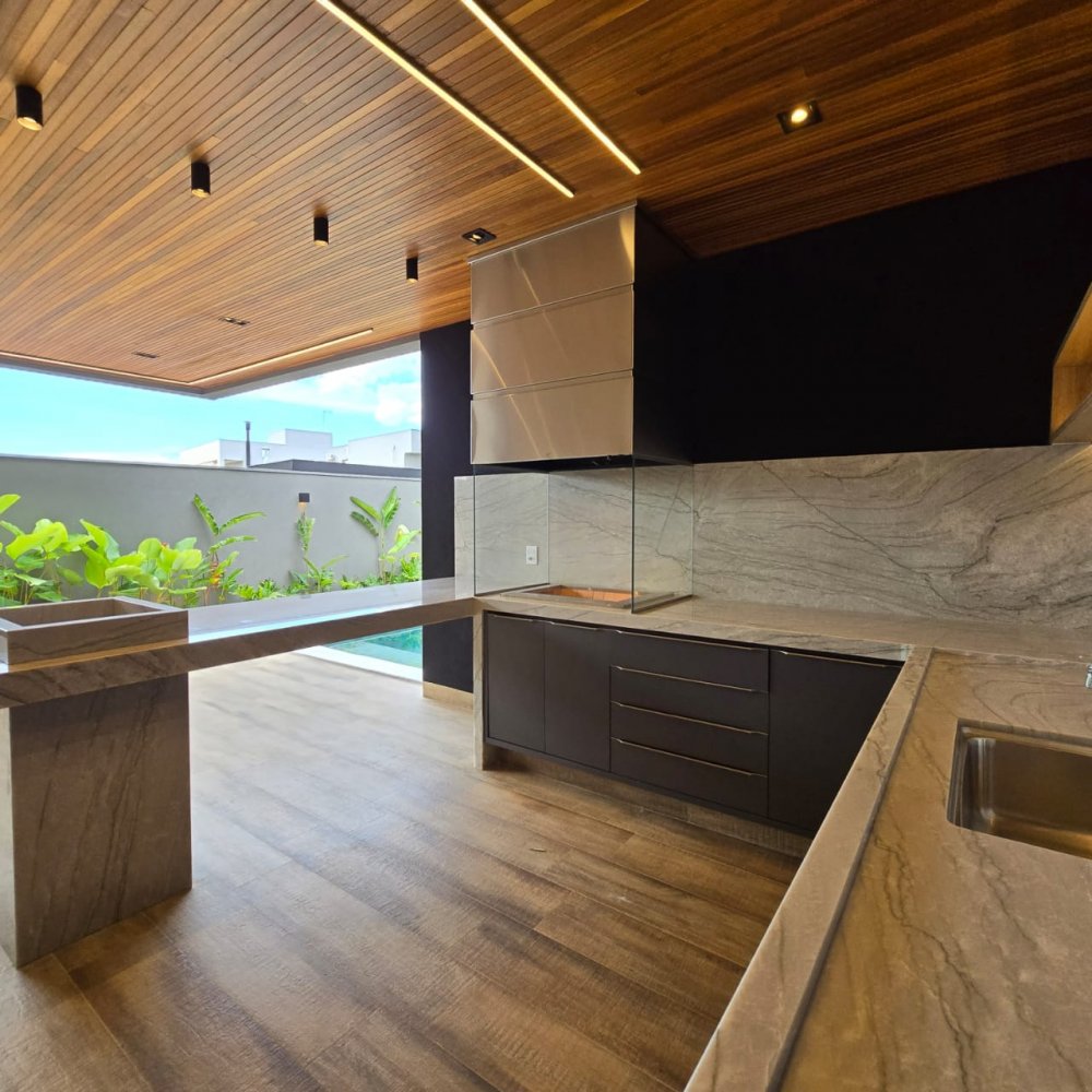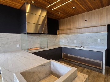 4 vagas, sendo 2 cobertas. Sala 2 ambientes com pé direito alto. Lavabo. Cozinha com ilha. 3 suítes, sendo uma master com closet, cuba e chuveiro duplos. Área gourmet com churrasqueira. Piscina aquecida com hidromassagem, iluminação e cascata. Vestiário. Lavanderia espaçosa.