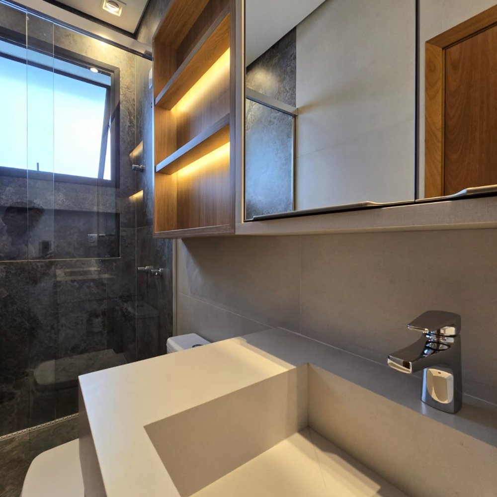 Entrega com: Armários, Paisagismo, Iluminação completa, Cooktop, Coifa, Forno, Chuveiro, Box, Espelhos e Completa em armários.