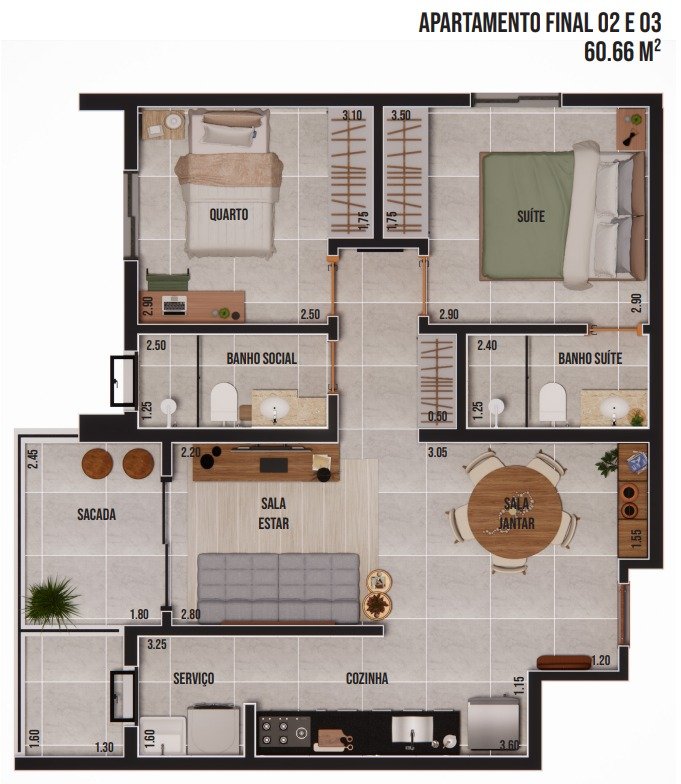 Apartamentos com 1 ou 2 dormitórios, acabamento de alto padrão e até 2 vagas de garagem.