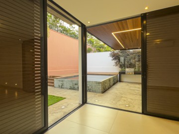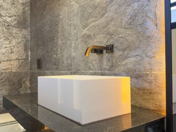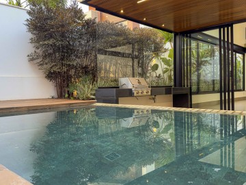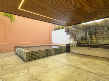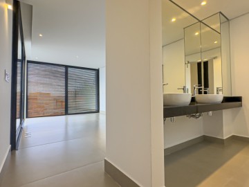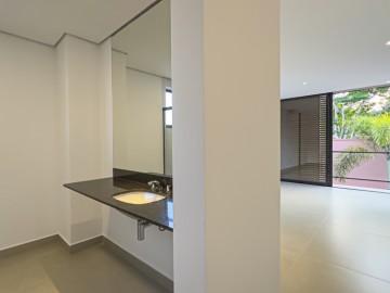 São 4 suítes sendo uma ampla suíte no piso térreo e 3 suítes no piso superior sendo uma máster com closet e acesso rooftop.