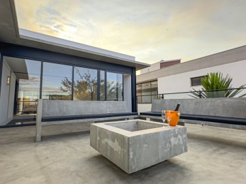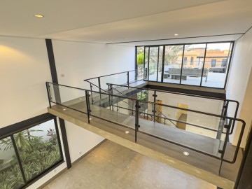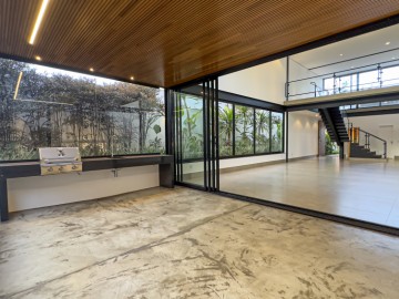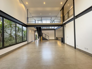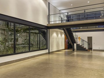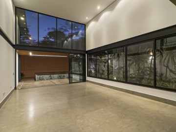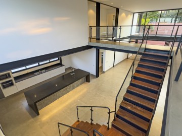 Amplo living integrado a todos ambientes, onde toda arquitetura foi inspirada nos conceitos Bauhaus, onde se replica o conceito industrial dentro do residencial. A estrutura metálica contribui para a concepção do design.