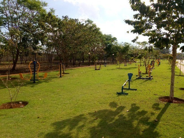 Condomínio com portaria 24h, piscinas, academia, salão de festas, campos e playground.