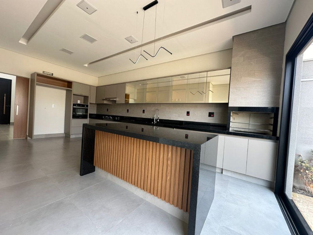 3 suítes com persianas automatizadas, sala 2 ambientes com pé direito alto e iluminação natural, escritório, roupeiro na área intima, cozinha e gourmet integradas com churrasqueira, cooktop, forno e coifa, piscina com hidro, cascata e iluminação, banheiro externo e lavanderia. Completa em armários e iluminação. 4 vagas, sendo 2 cobertas.