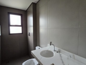 Sala ampla para 3 ambientes. Lavabo. Cozinha. Área de serviço com banheiro. Roupeiro na área íntima. 3 suítes, sendo a master com closet e banheiro com cuba e chuveiro (de teto) duplos. Varanda gourmet. 3 vagas + Box de despejo na garagem.