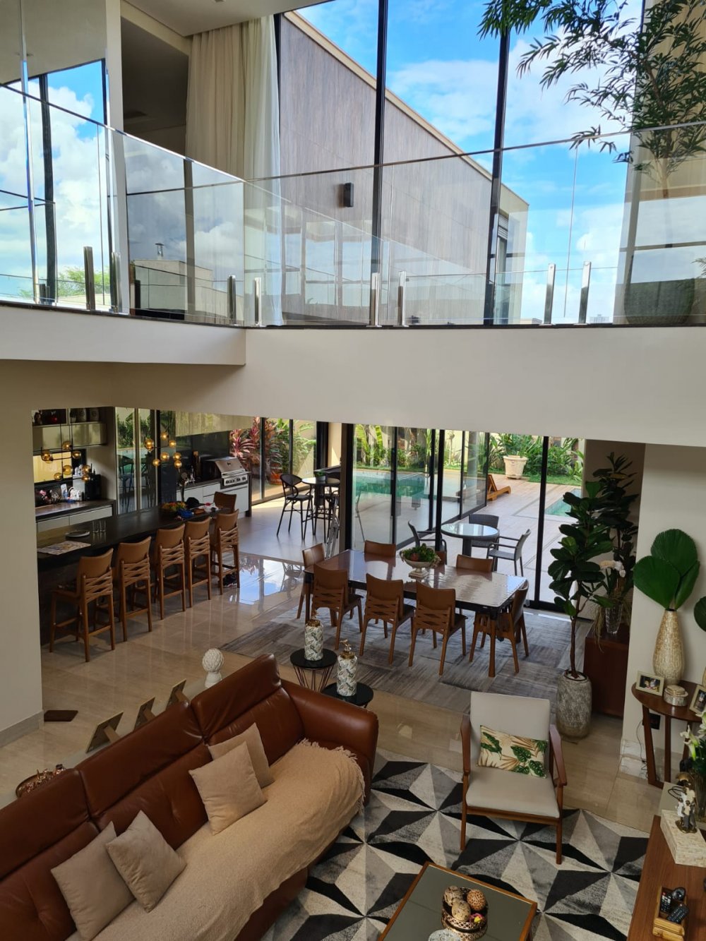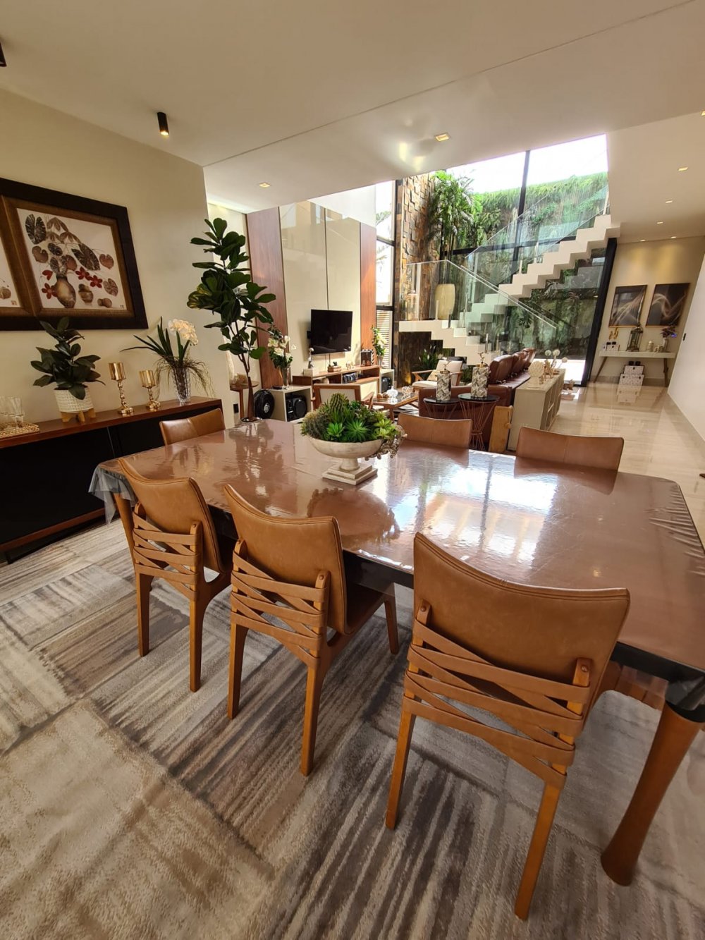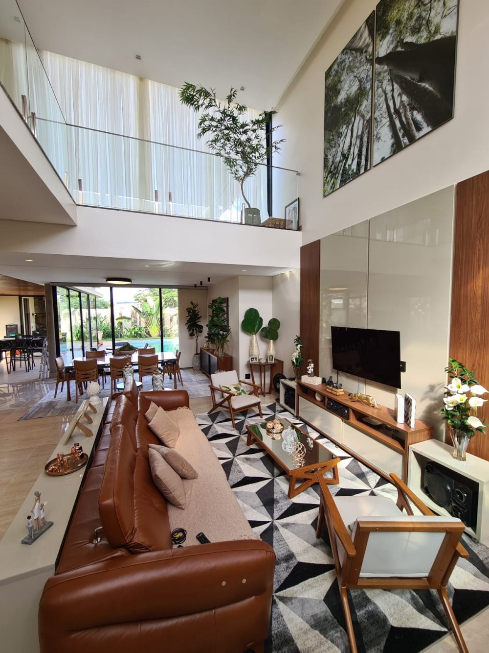 Sala 3 ambientes com pé direito alto e 1 Sala intima no pavimento superior.