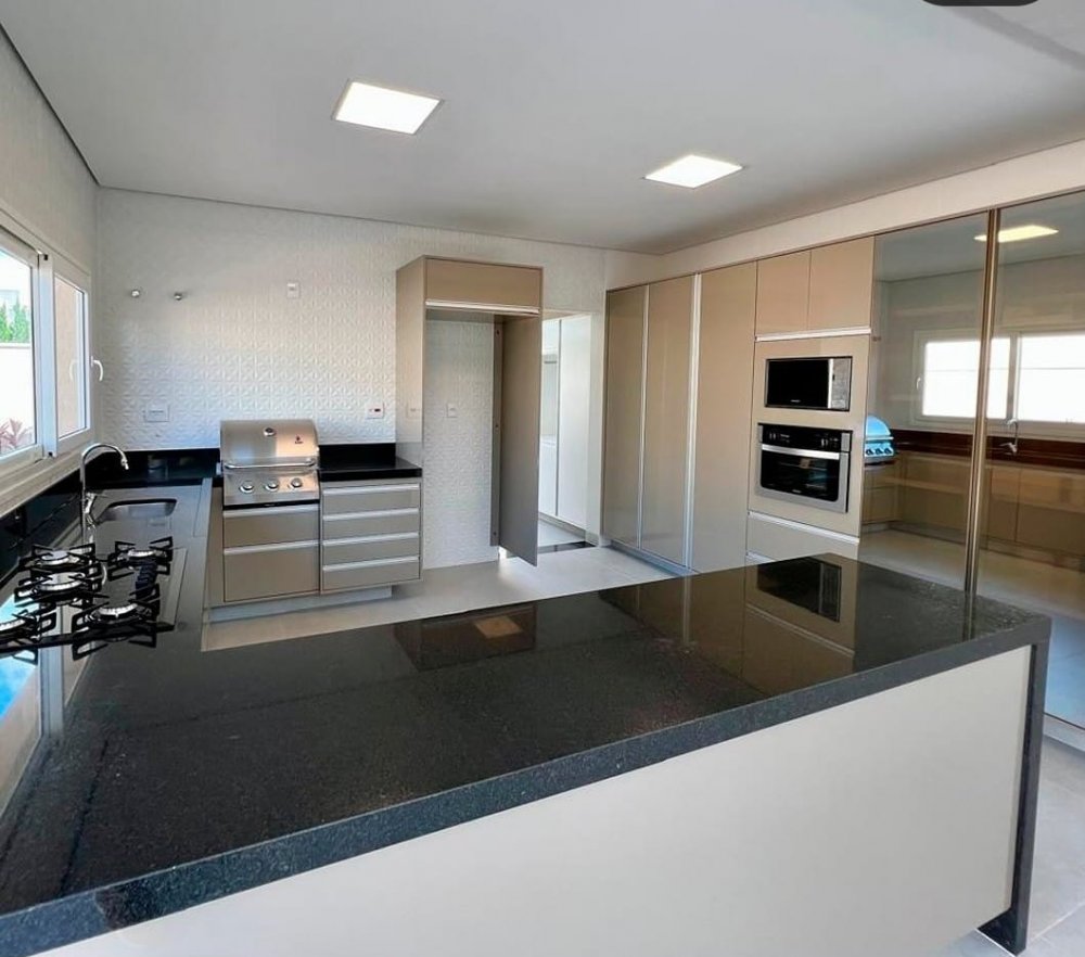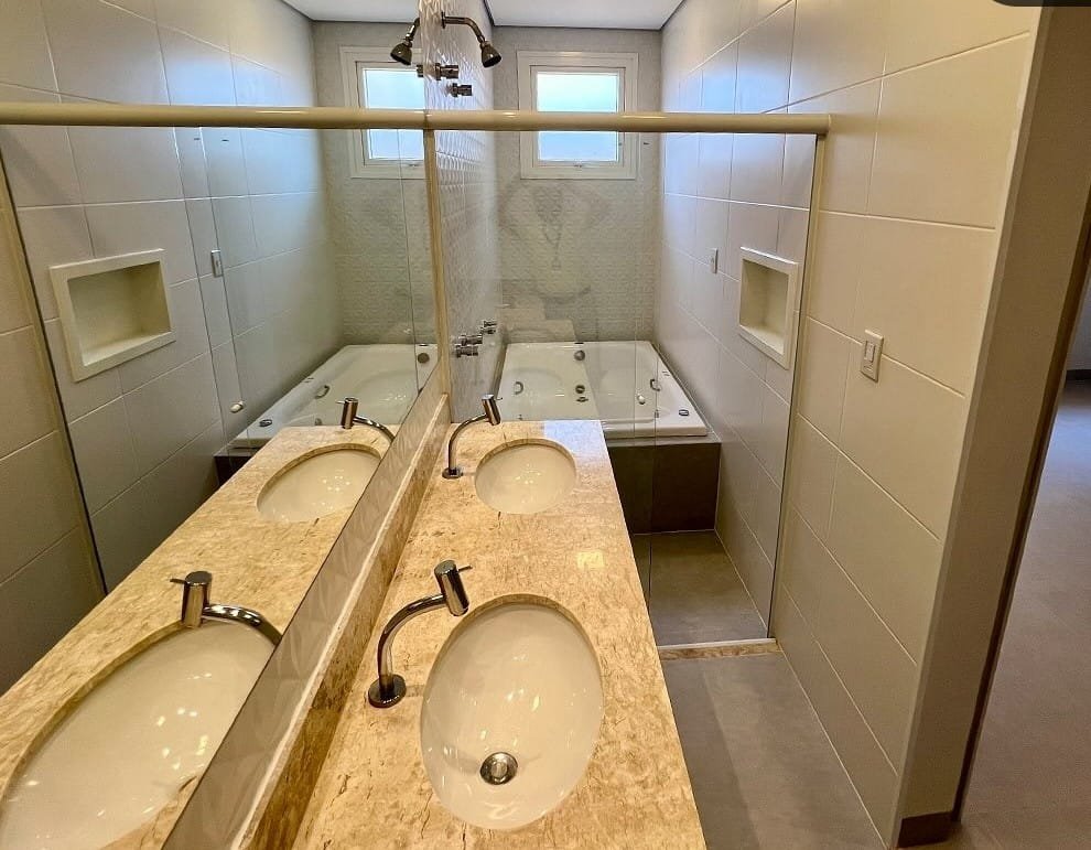 4 suítes - máster com closet, hidro e cubas duplas, amplo living 2 ambientes, home TV (reversível para 5º dormitório), lavabo, cozinha gourmet com churrasqueira, piscina aquecida, banheiro externo e lavanderia. Completa em armários e iluminação. 4 vagas, sendo 2 cobertas.