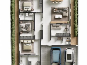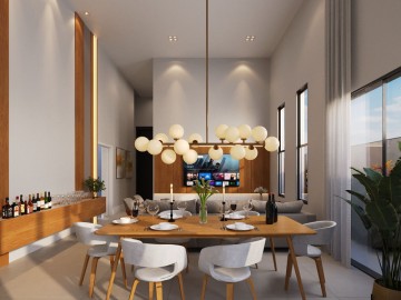 Casa térrea. Sala com pé direito alto. Escritório (reversível para 4° suíe). Lavabo. Cozinha separada da área gourmet. Roupeiro na área íntima. 3 suítes, todas com persiana blackout e armário, sendo a principal com closet e banheiro equipado com pia e chuveiro duplos. Varanda gourmet com churrasqueira. Piscina com hidro e iluminação. Vestiário completo. Área de serviço. Garagem para 4 veículos (2 cobertas).