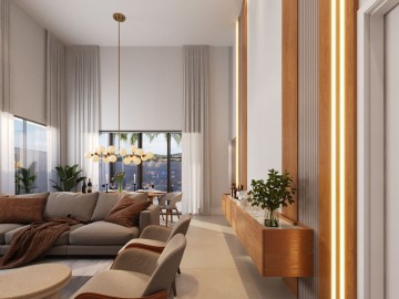 Entregue com Iluminação completa. Armários completos. Espelhos e box. Paisagismo. Persianas automatizadas. Eletrodomésticos(forno, micro-ondas, cooktop, coifa). Boiler e aquecedor. Infra estrutura para ar condicionado e fotovoltaica.
