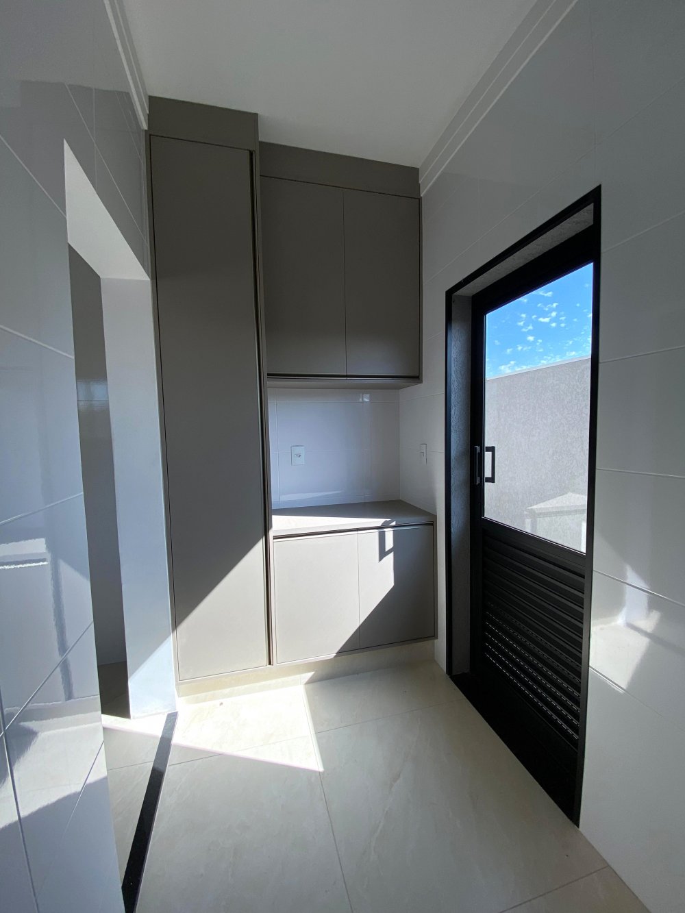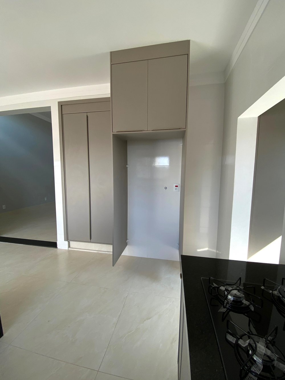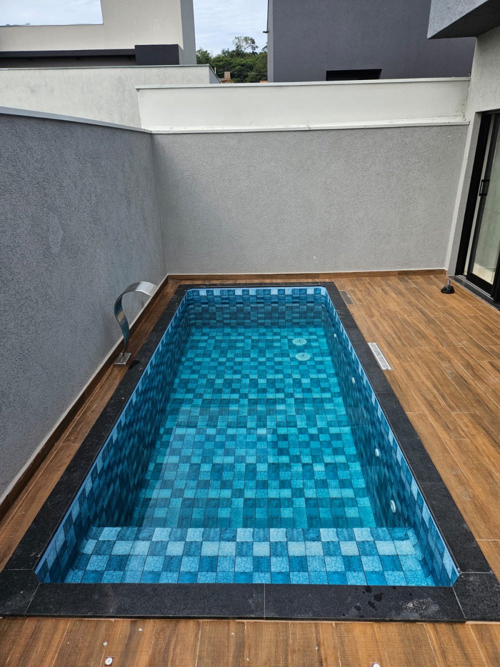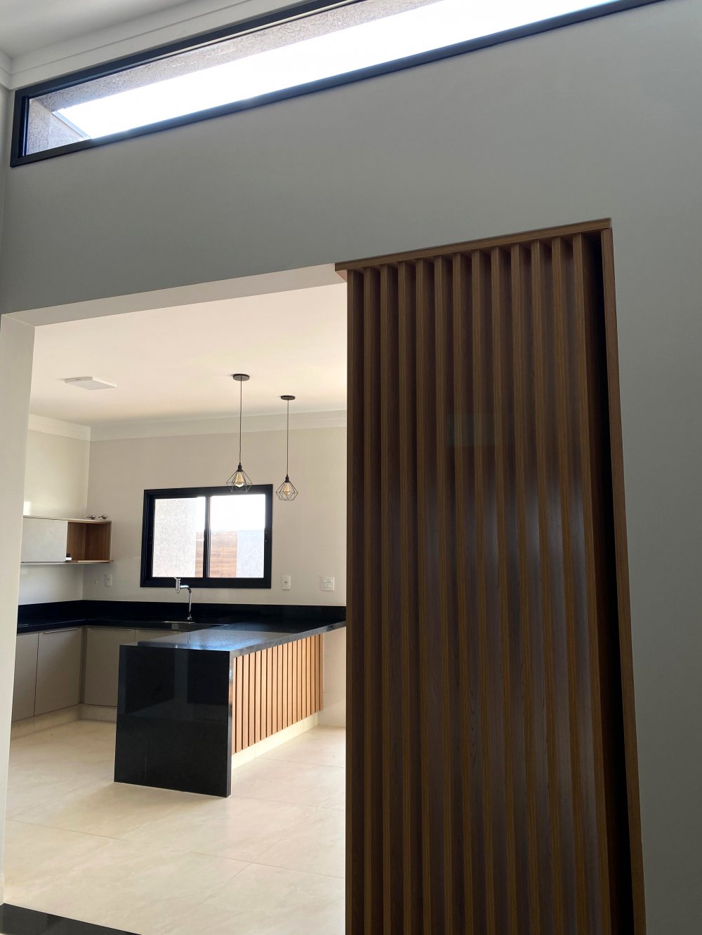 Sala com pé direito alto e iluminação natural, porta de entrada com 3 metros de altura, em alumínio e fechadura eletrônica. Lavabo com espelhos e marcenaria. Cozinha gourmet com churrasqueira, completa em armários, despensa, cooktop, e ponto de Hidráulica para máquina de lavar. Área de serviço. 3 suítes, sendo a master com closet e banheiro com Cuba dupla e chuveiro duplo. Piscina com cascata, iluminação com controle remoto e parte hidráulica preparada para aquecimento. Vestiário.