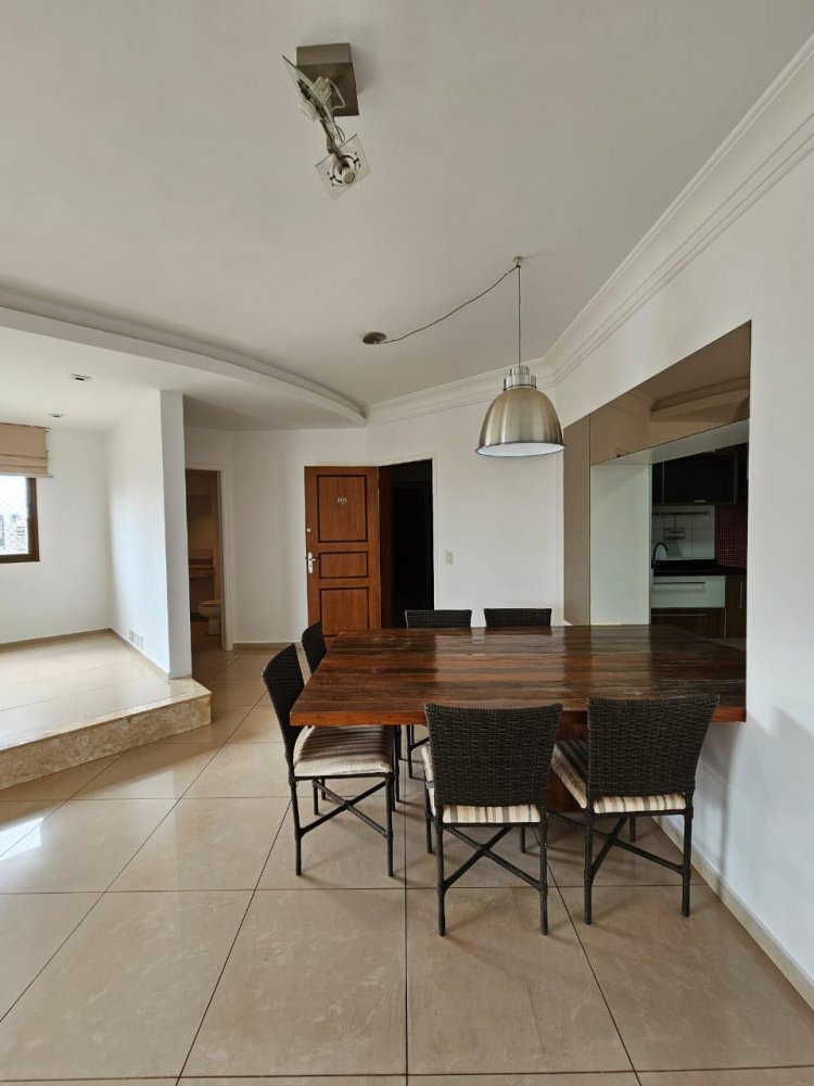 Sala 2 ambientes. Lavabo. Cozinha ampla e planejada, com despensa. Área de serviço com banheiro de funcionário. 3 dormitórios, sendo 1 suíte com closet, possui 2 banheiros, 2 vagas de garagem paralelas. Completo em armários muito conservados. Climatizado. Face sombra.
