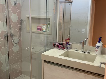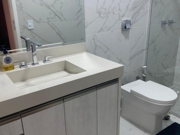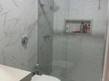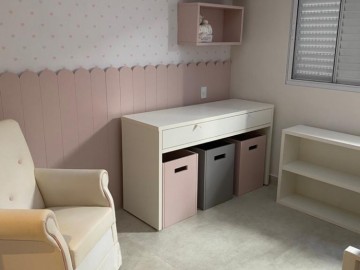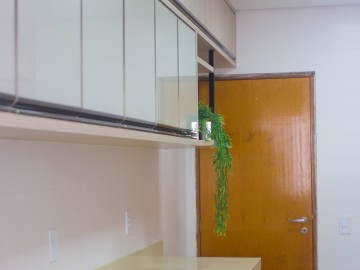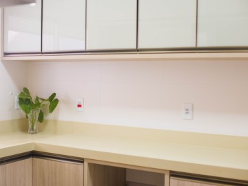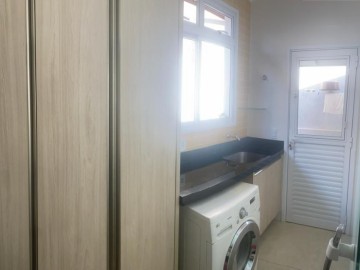 Garagem coberta para dois carros. Sala ampla em 2 ambientes, com ar-condicionado e móveis planejados. Cozinha planejada, com bancadas em Silestone e completa em armários. Lavanderia funcional com armários sob medida.