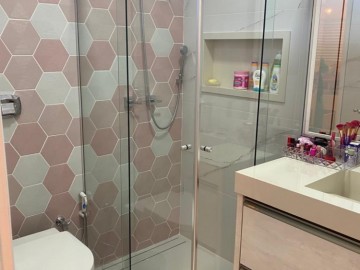 Área gourmet fechada, com forno e cooktop elétricos, churrasqueira, rica em armários, fechamento em vidro e ar-condicionado, além de um banheiro externo para atender à área de lazer. Piscina aquecida. Aquecedor solar e energia fotovoltaica.
