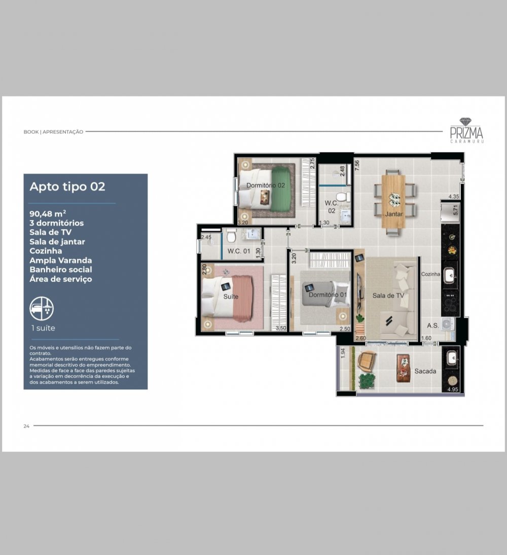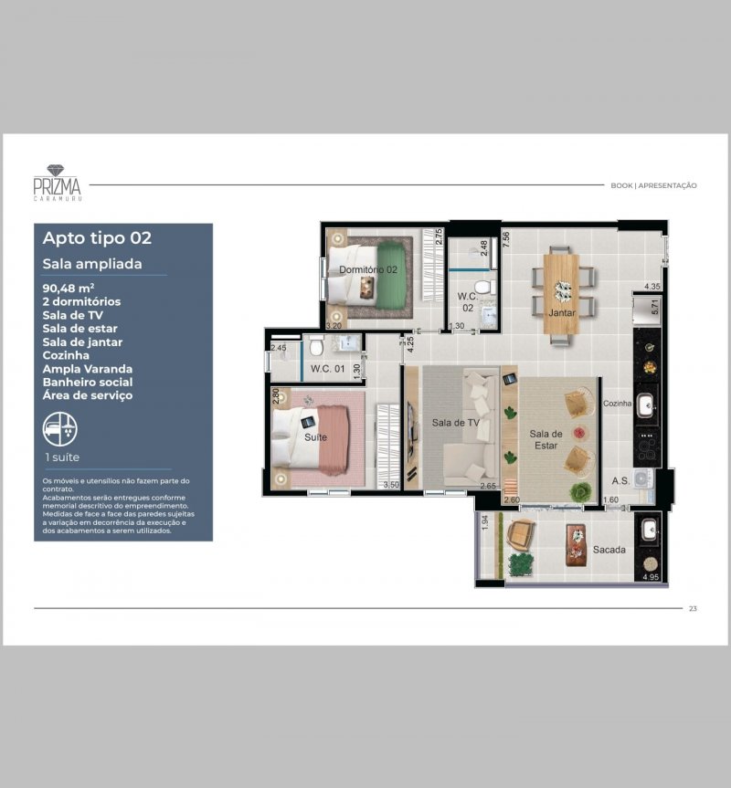 - Área Privativa: 90,58 m²