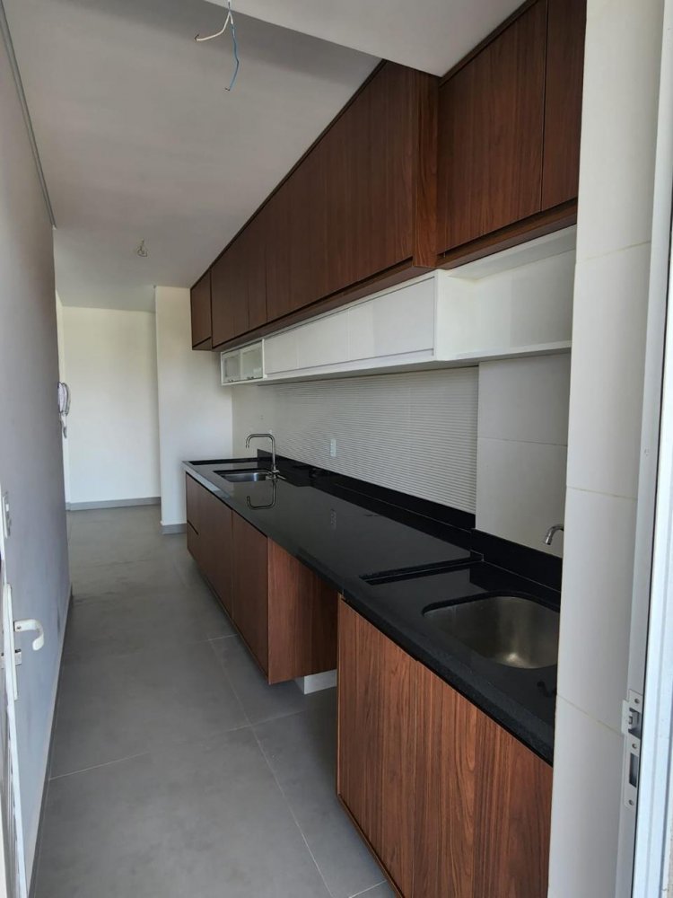 Sala 3 ambientes (podendo converter em um terceiro dormitório) com painel, integrada com a cozinha que já está completa com armários, cooktop e coifa embutida montados e funcionando. Área de serviço com marcenaria. Banheiro social com gabinete e revestimentos dos banheiros diferenciados, bancadas em mármores com cubas escupidas. 2 dormitórios, sendo 1 suíte. Sacada ampla com espaço para área gourmet e vista livre.