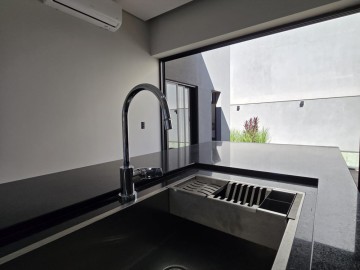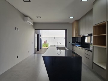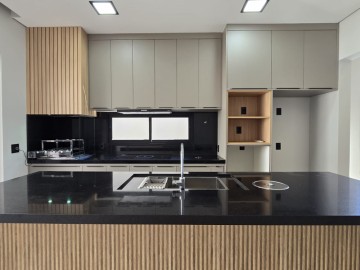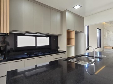 Distribuido em 3 suítes, escritório, lavabo, sala 2 ambientes, cozinha, varanda gourmet com churrasqueira, piscina, vestiário, completa com armários, blindex, ar condicionado, espelho e iluminação, 4 vagas de garagem.