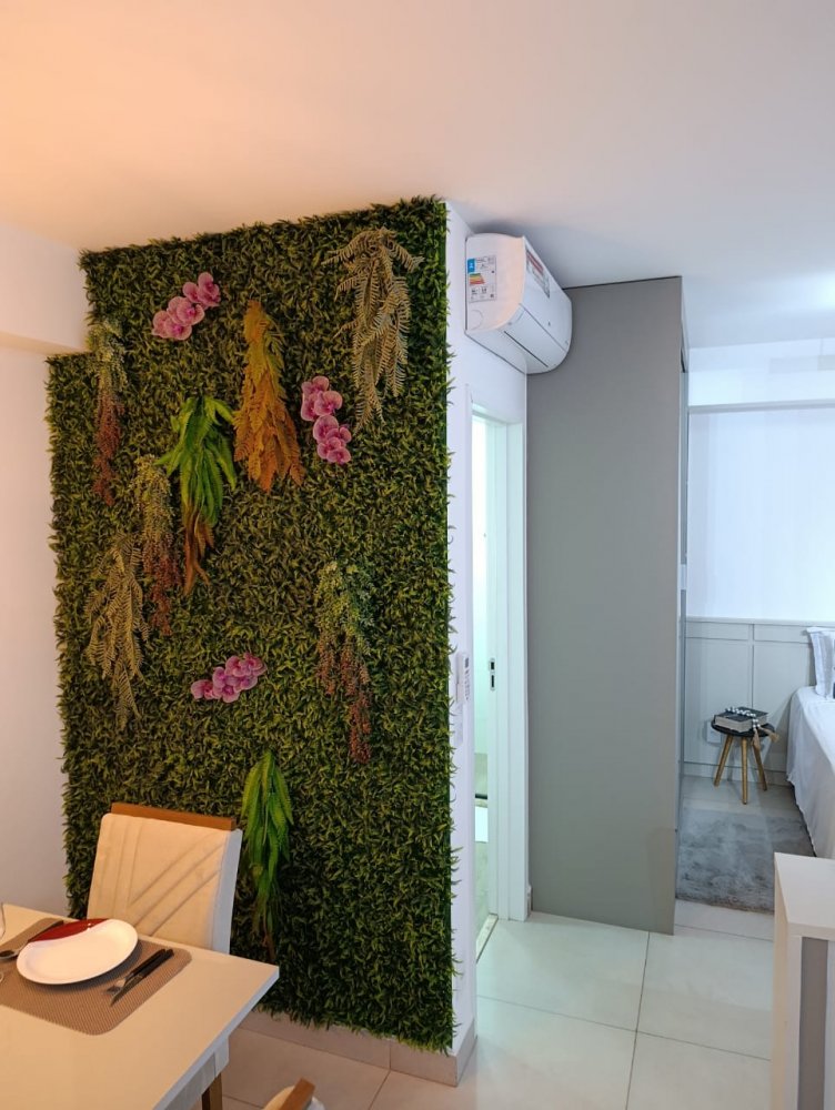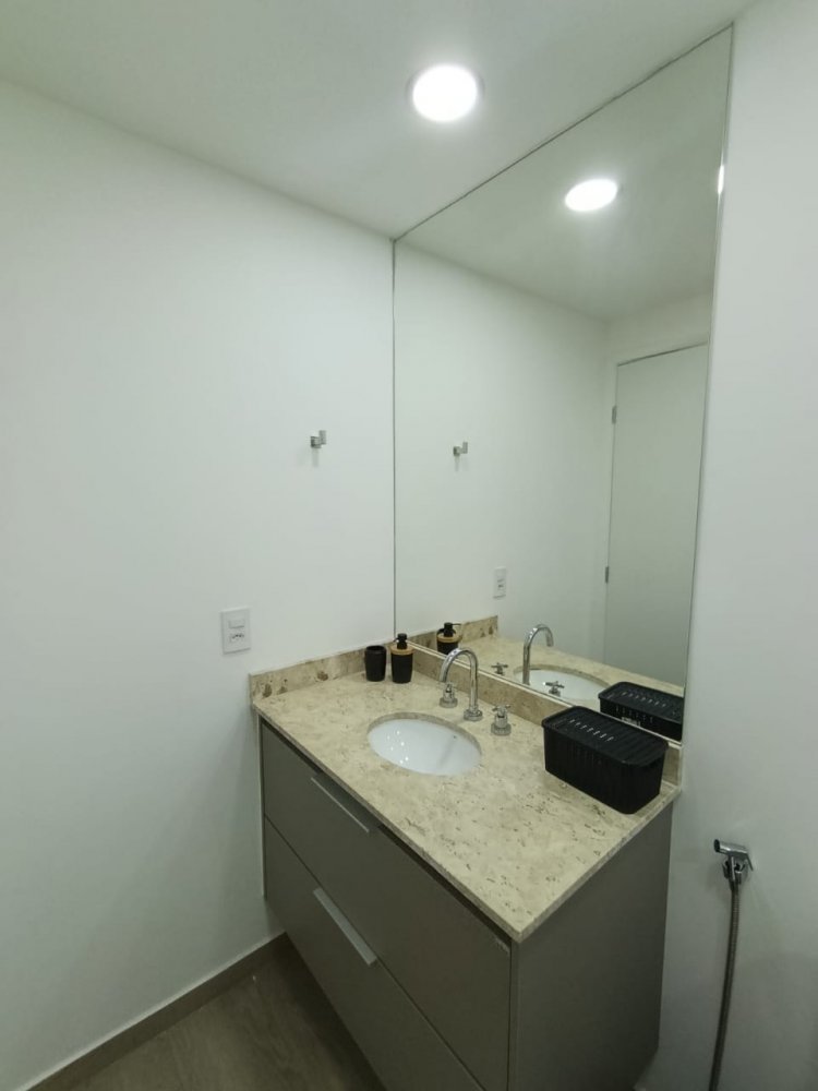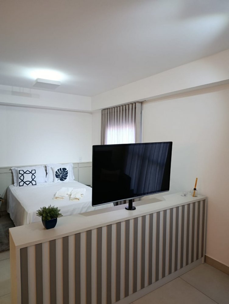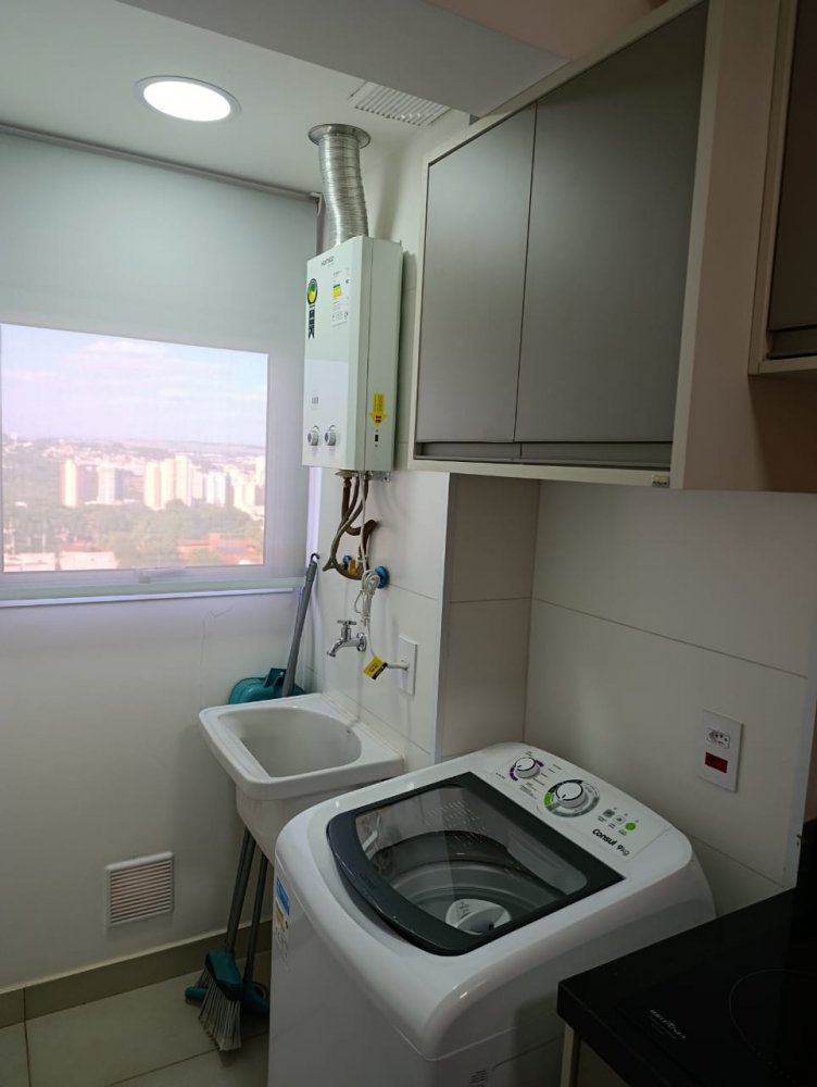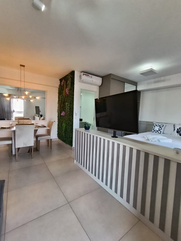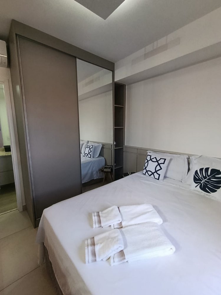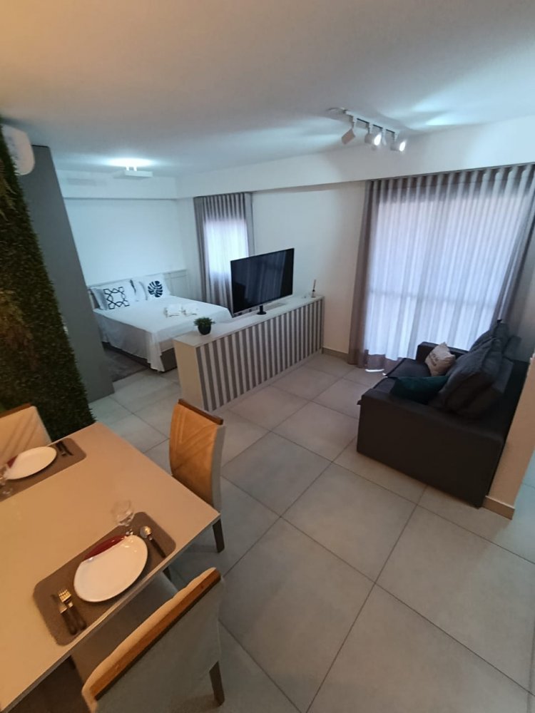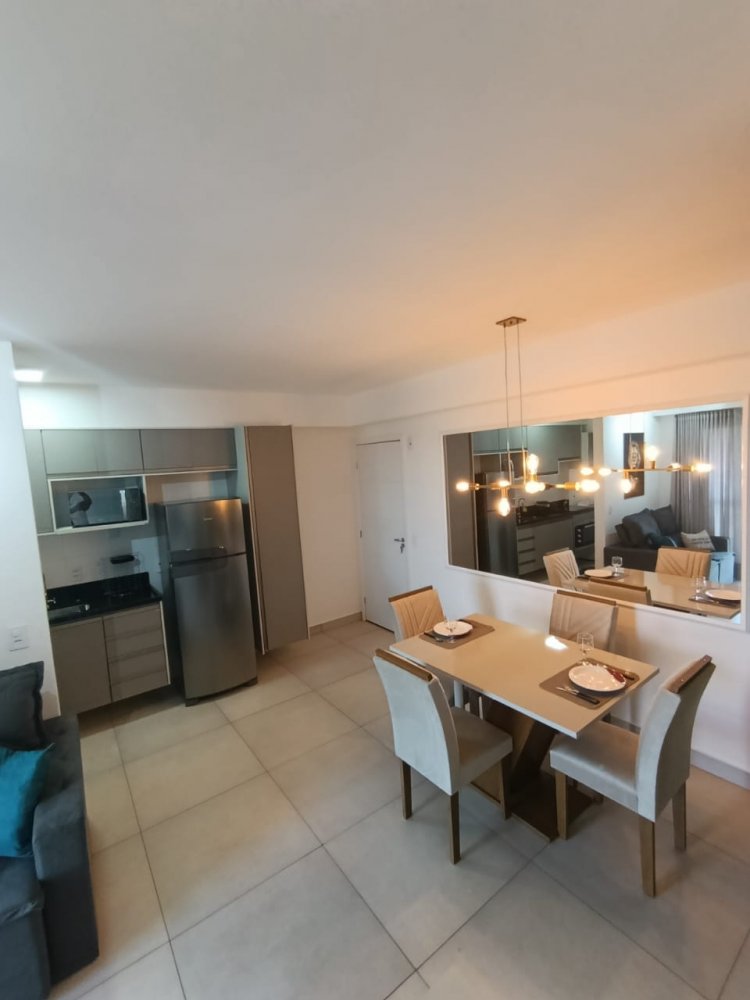 Mobiliado - Ótima distribuição dos espaços, conta com cozinha americana completa e planejada, área de serviço integrada, ampla sala 2 ambientes, quarto, banheiro e sacada (apartamento sombra) com 1 vaga de garagem coberta.