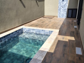 4 vagas de garagem, sendo 2 cobertas. Sala 2 ambientes com pé direito alto. 3 amplas suítes com armários, sendo a principal com mesinha e cabeceira, armários com espelho e pia com duas cubas no banheiro. Cozinha Gourmet com Cooktop e coifa. Piscina com Hidromassagem, iluminação em led e cascata. Paisagismo Completo.