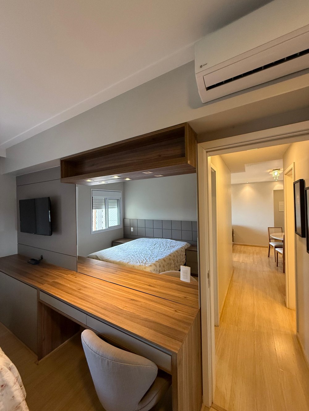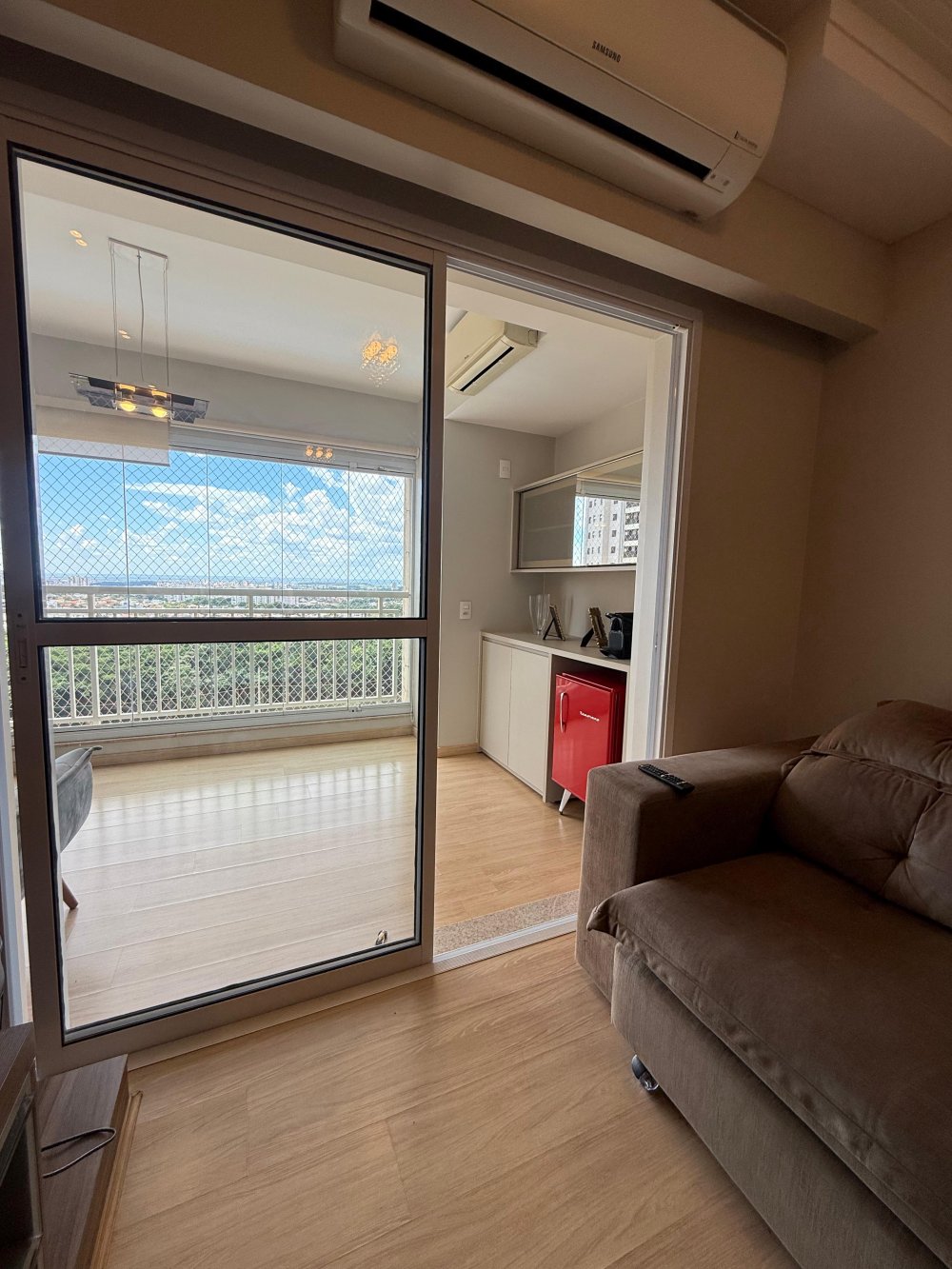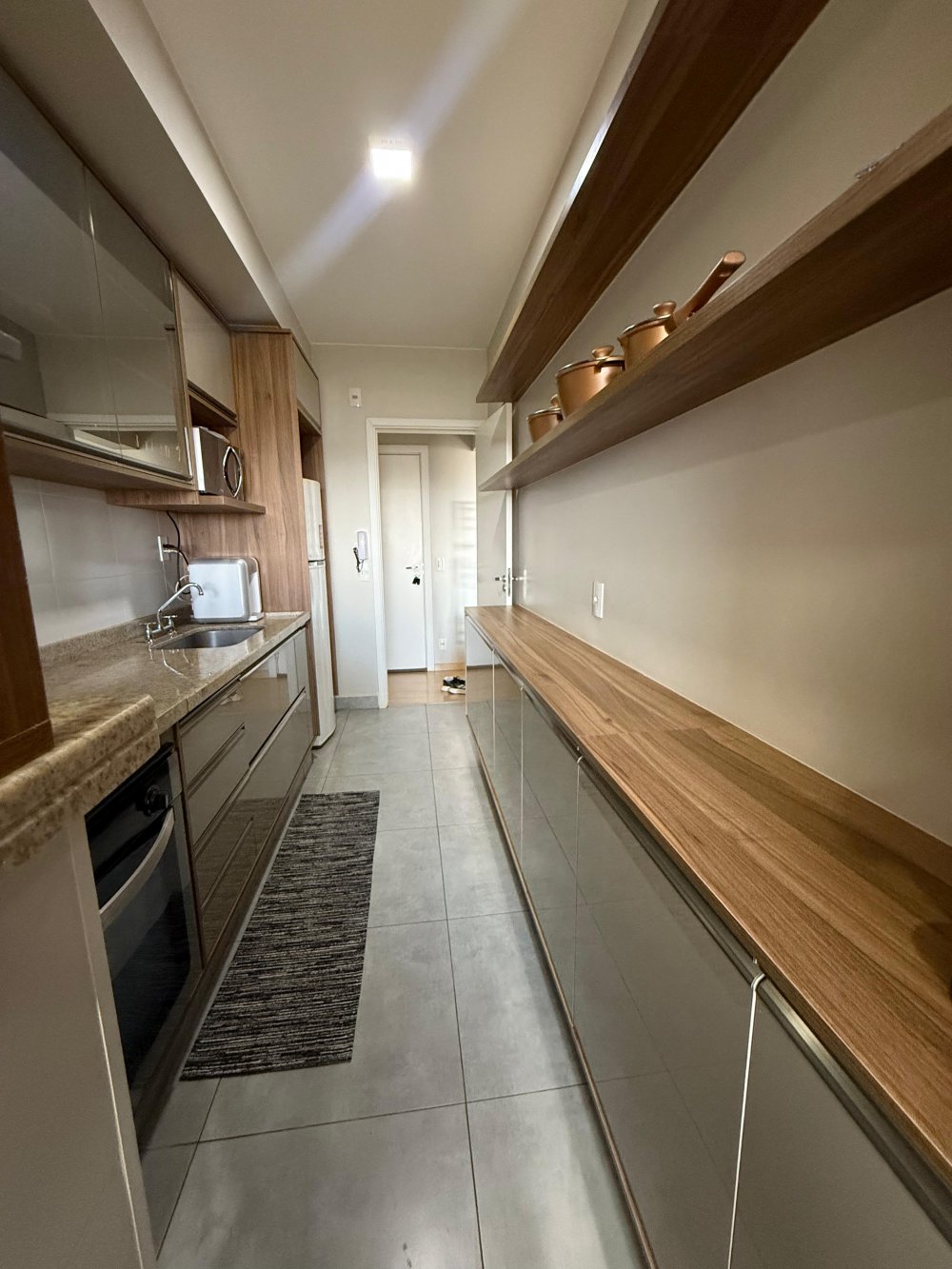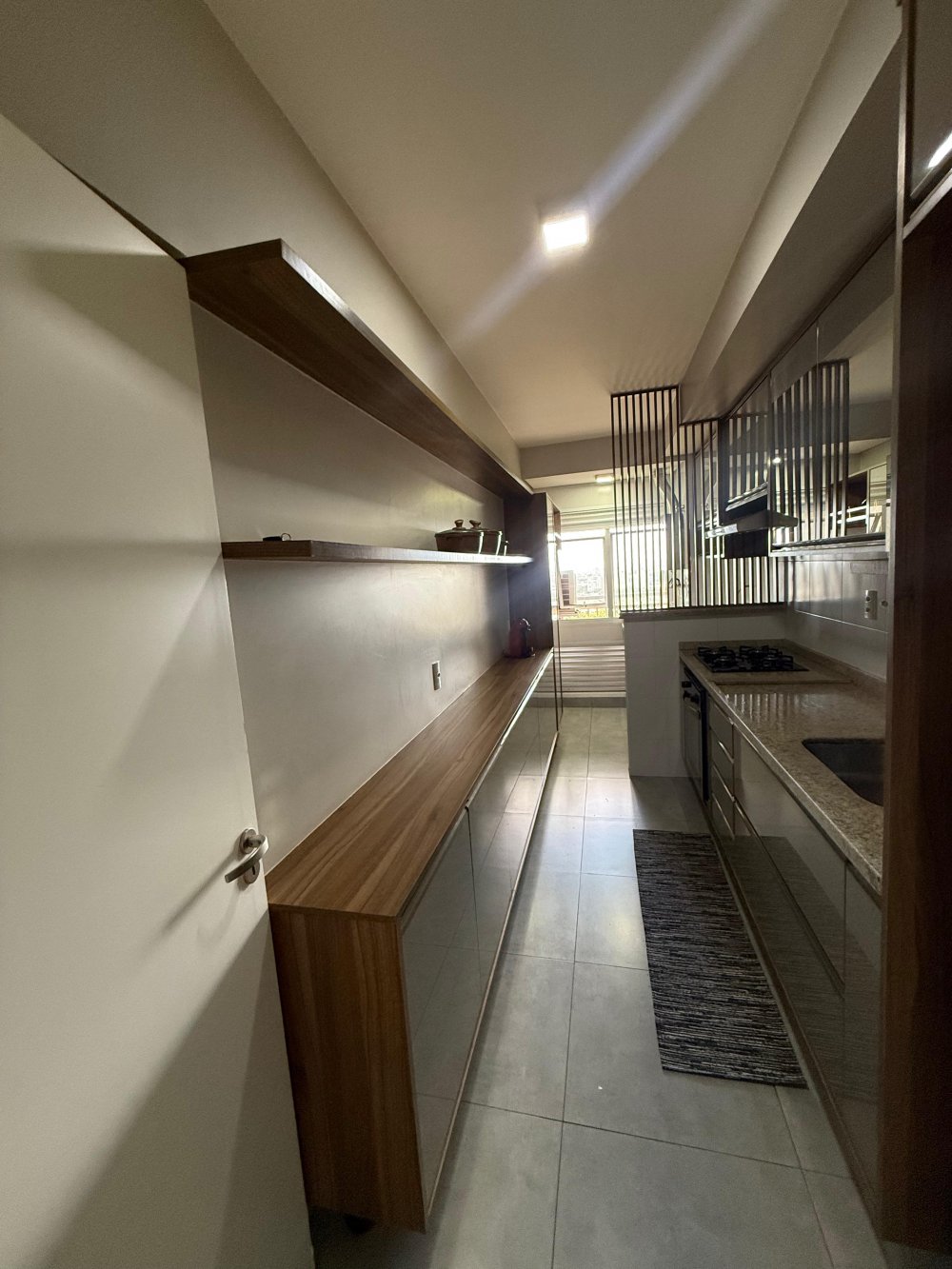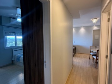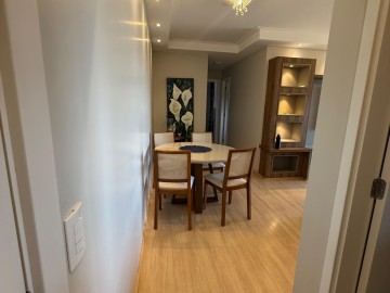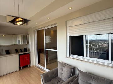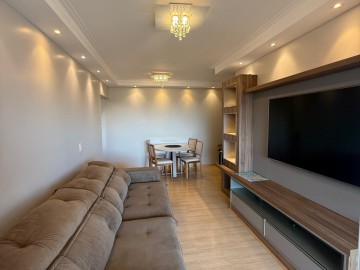 Charmoso apartamento com decoração impecável, todo reformado com porcelanato, cortina em todos os ambientes e móveis de qualidade.