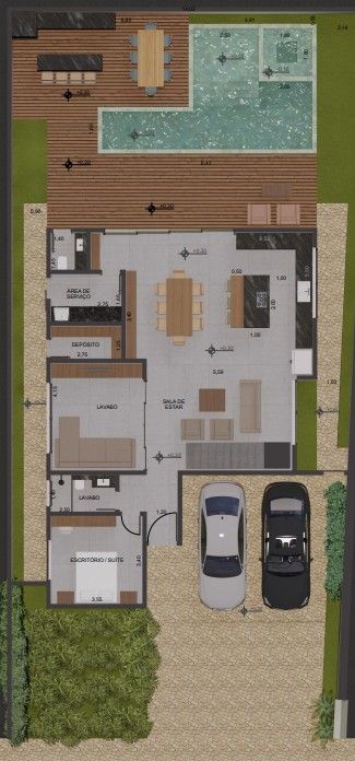 4 vagas na garagem, sendo 2 cobertas. Escritório (pode ser revertido para 4° suiíte), Lavabo completo com chuveiro. Sala de estar (living) com pé direito duplo. Sala de tv, separada e fechada. Cozinha gourmet com sala de jantar ampla e integrada. Área de serviço com entrada interna e externa. 3 suítes no piso superior, sendo a master com banheiro sr. e sra., além de amplo closet. Sala íntima também no pavimento superior. Na área externa há uma maravilhosa varanda gourmet, piscina com hidro, ampla área de solarium e um depósito.