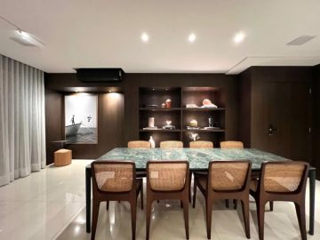 Diferenciais: Projeto luminotécnico, Ar condicionado em todos em ambientes, Cortinas e persianas, Tomadas e interruptores inteligentes integradas a Alexa, Sistema de som embutido, Pisos em porcelanato crema marfil 90x90cm, Pedras todas trocadas ao entregue padrão da construtora e Vaso sanitário do lavabo e suíte master padrão premium.