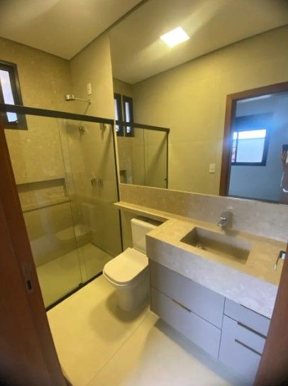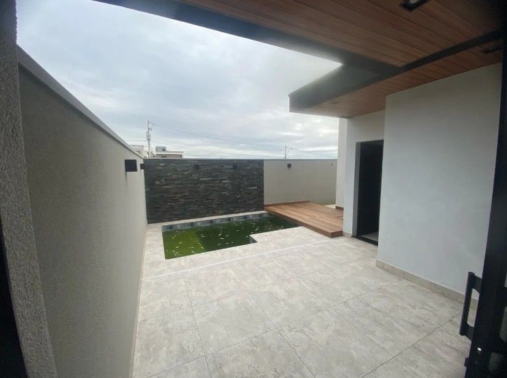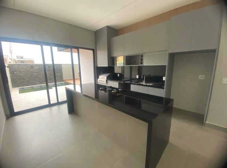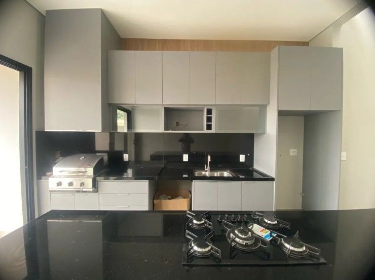 Sala 2 ambientes com pé direito alto, porta de entrada com fechadura eletrônica. Lavabo com espelhos e marcenaria. Cozinha gourmet com ilha, churrasqueira, completa em armários, churrasqueira elétrica, coifa, cooktop e forno elétrico. Área de serviço com armários. 3 suítes com armários e persianas automatizadas, sendo a master com closet e banheiro com cuba dupla e chuveiro duplo. Piscina com cascata, iluminação e parte hidráulica preparada para aquecimento.