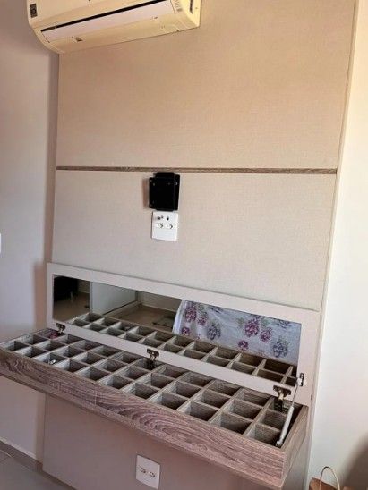 90m² - Elevador - Sala 2 ambientes com painel, ventilador, ar condicionado, cortina e ilustre. Cozinha independente com armários planejados, com forno, cooktop, coifa e microondas. 3 dormitórios com móveis planejados, sendo 2 com ar condicionado e 1 suíte. Banheiro social com gabinete, box e chuveiro. Sacada gourmet com churrasqueira, balcão com pia, vista livre, fachamento em vidro e persiana. 2 vagas na garagem.