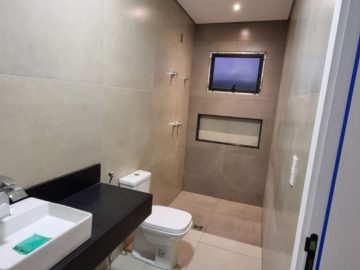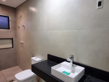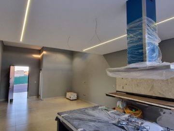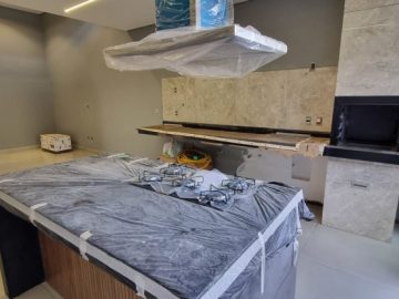 Sala 2 ambientes com pé direito alto, porta de entrada com fechadura eletrônica. Lavabo. Escritório com acesso externo promovendo privacidade. Cozinha gourmet com ilha com cooktop, forno e coifa, pia dupla, churrasqueira, completa em armários. Área de serviço com armários. 3 suítes, sendo a master com closet e banheiro com cuba dupla. Piscina com cascata, hidro e LEDe parte hidráulica preparada para aquecimento.