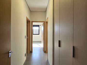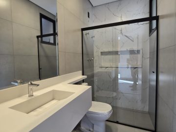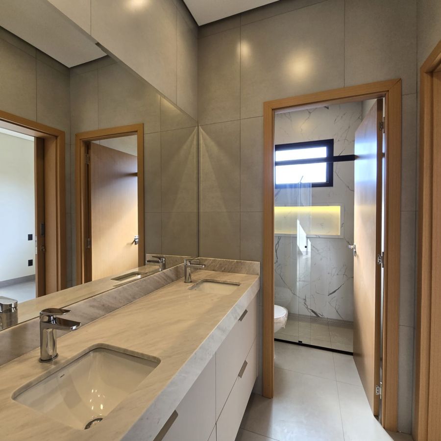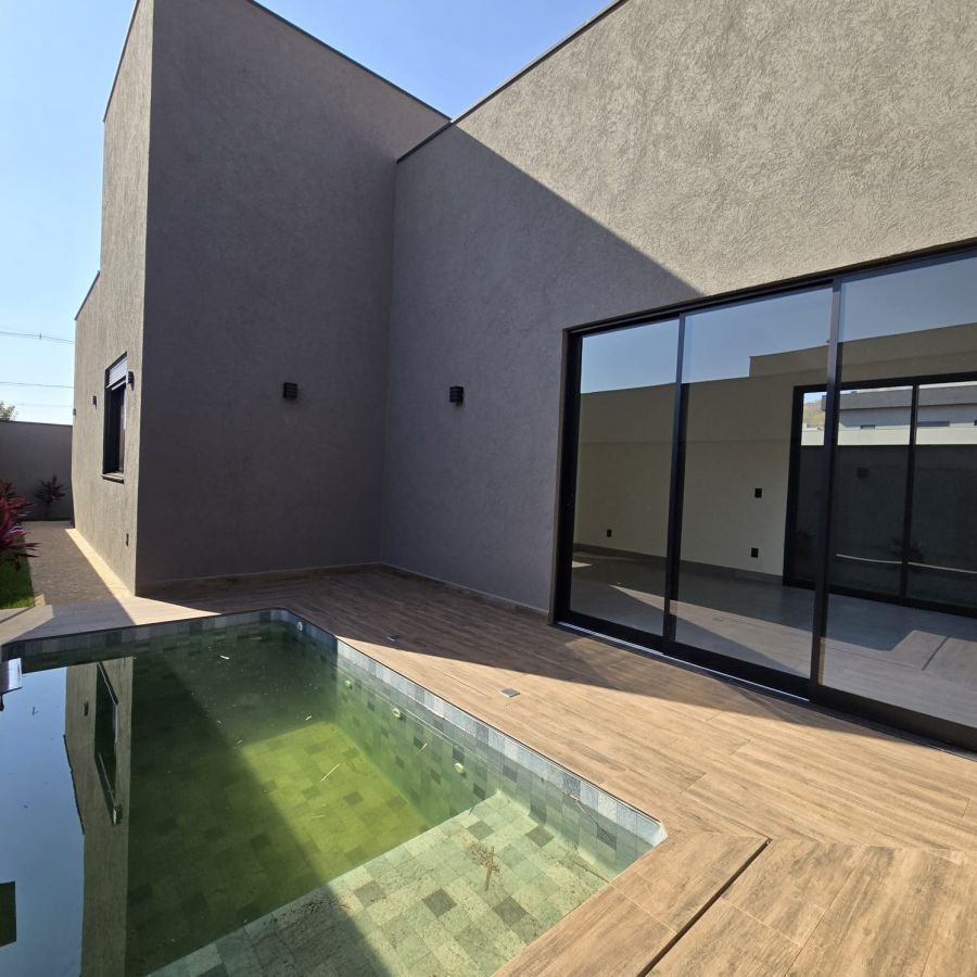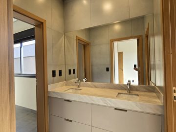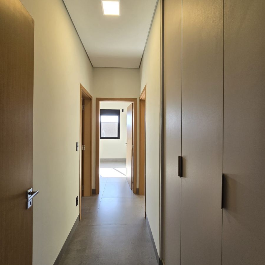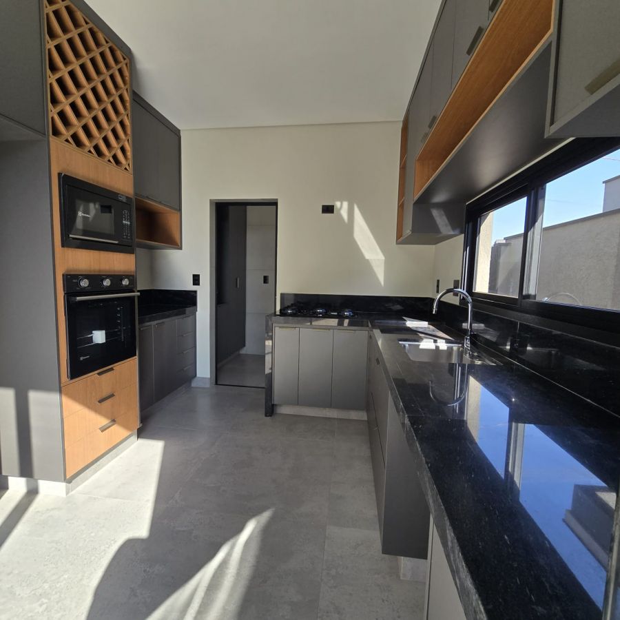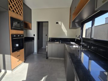 Sala 2 ambientes com pé direito alto, porta de entrada com fechadura eletrônica.Lavabo com espelhos e marcenaria. Cozinha gourmet com ilha, churrasqueira, completa em armários, cooktop e forno . Área de serviço com armários. 3 suítes, sendo 2 no estilo americano e a master com closet e banheiro com cuba dupla e chuveiro duplo. Piscina com cascata, iluminação e parte hidráulica preparada para aquecimento.