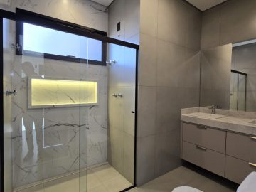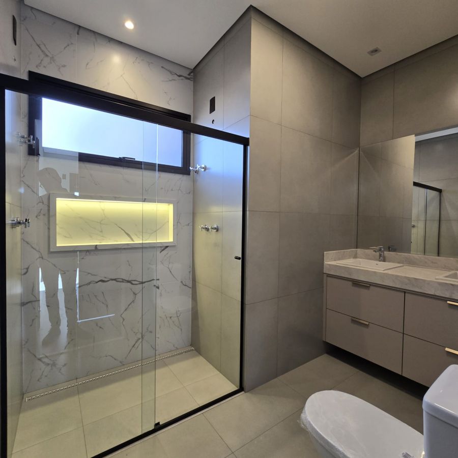 Aquecimento solar com placas e boiler. Preparação para energia fotovoltaica. Iluminação completa em led, inclusive nos nichos do banheiro. Entregue com gabinete, Box e espelhos.