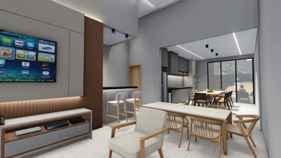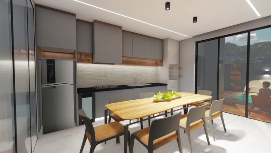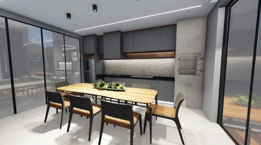 Sala 2 ambientes com pé direito alto. Lavabo. Espaço home office. Cozinha independente. Área de serviço. 3 suítes, sendo a Master com closet e porta balcão. Área gourmet com churrasqueira. Piscina com revestimento cerâmico. Vestiário.