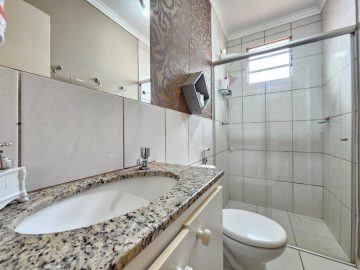 Garagem coberta para 2 carros. Sala 2 ambientes, mais uma sala de tv separada com ar condicionado (originalmente 3° dormitório). Cozinha bem iluminada com armários planejados. Área de serviço. 2 dormitórios com armários e ar condicionado, sendo 1 suíte. Área de Churrasco com armário. Quintal espaçoso com paisagismo.