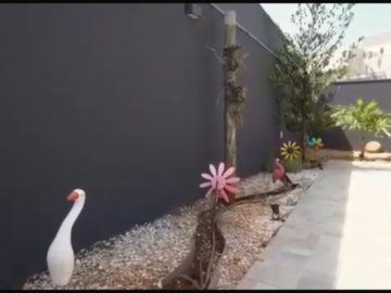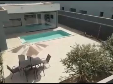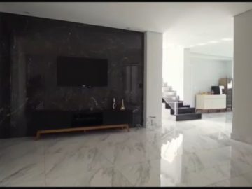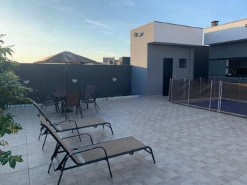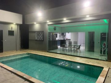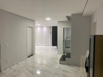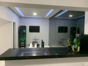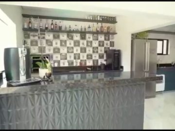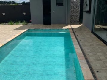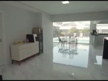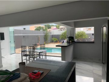 Com 3 Suítes com ar condicionado, sendo a master com chuveiro e cuba dupla (2 no pavimento superior e 1 no térreo) - sala dois ambientes - escritório - cozinha planejada rica em armários - área gourmet com churrasqueira - amplo quintal com piscina e paisagismo - garagem para 4 carros, sendo 2 vagas cobertas.