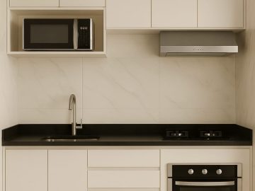 Iluminação completa, janela com persianas blackout, ar condicionado, aquecimento solar