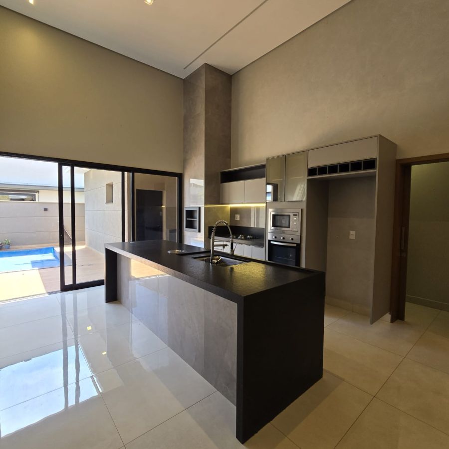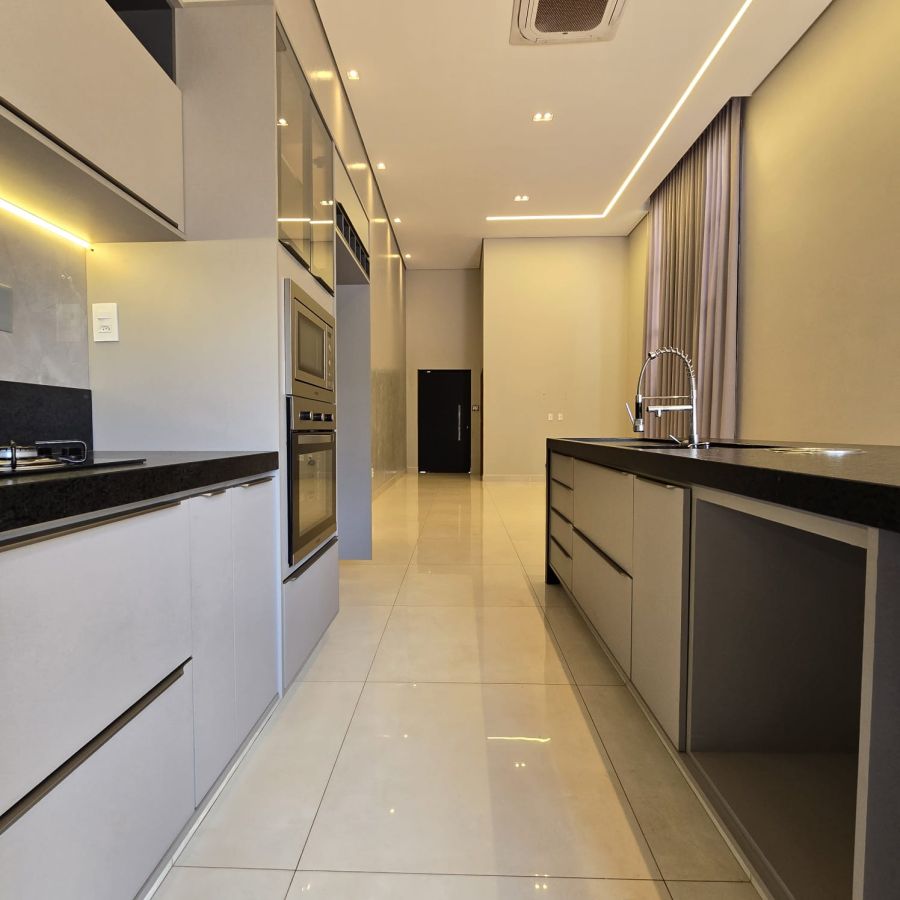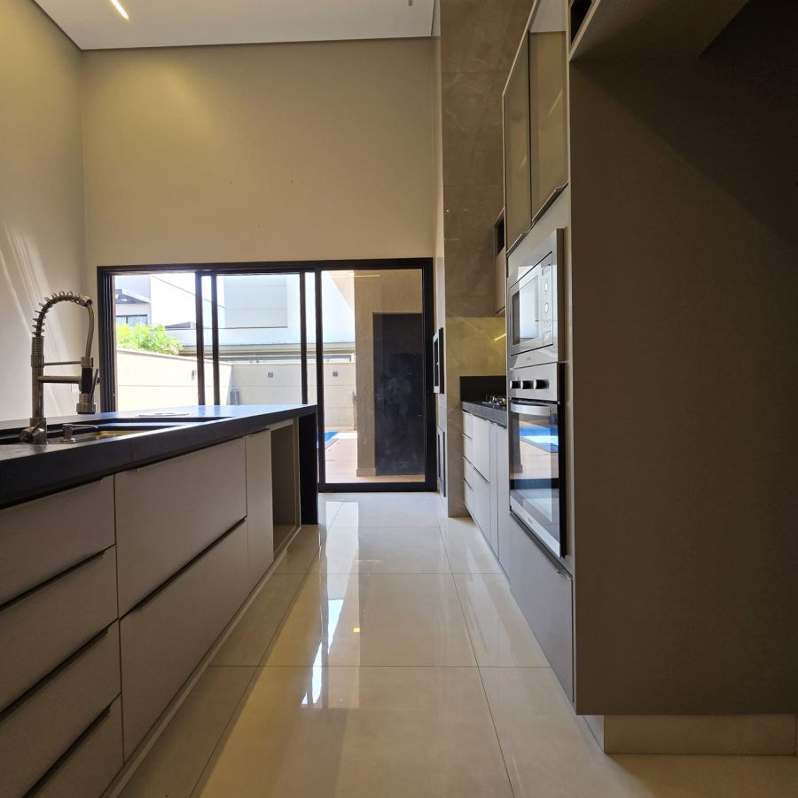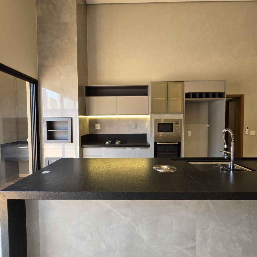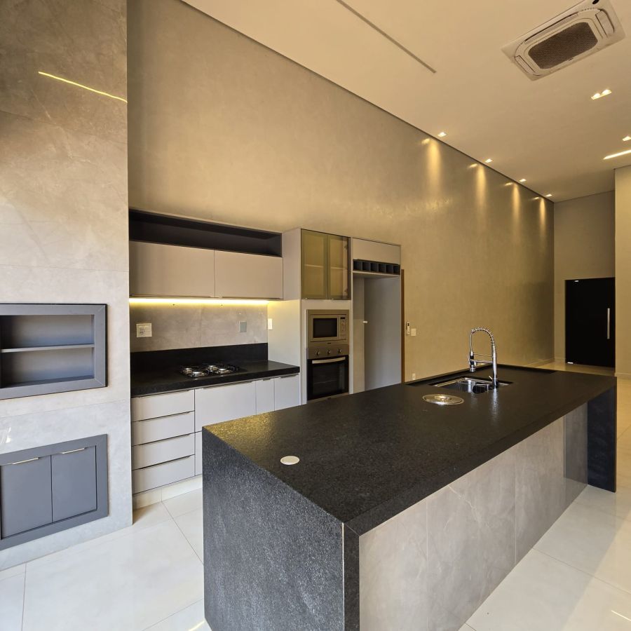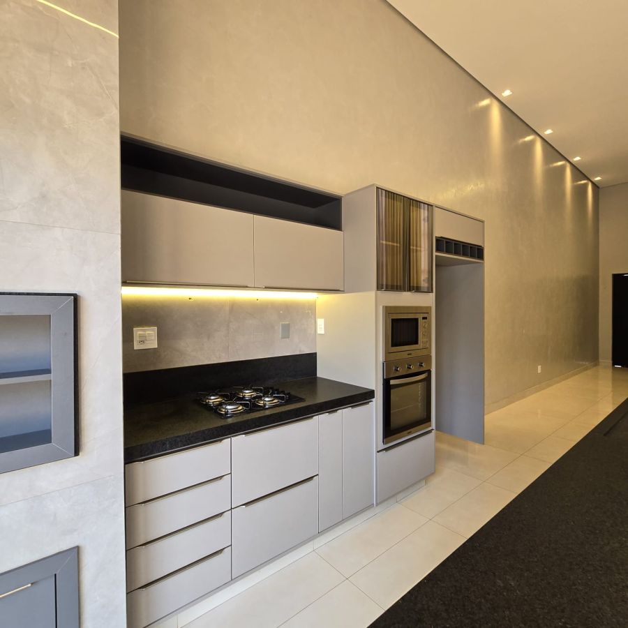 Bancada ampla e moderna, possui espaço reservado para lava-louças, cervejeira ou adega.