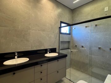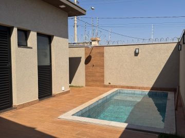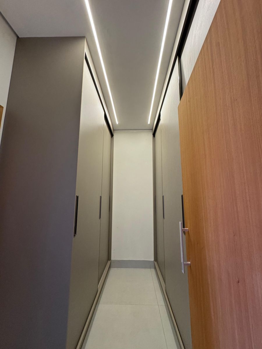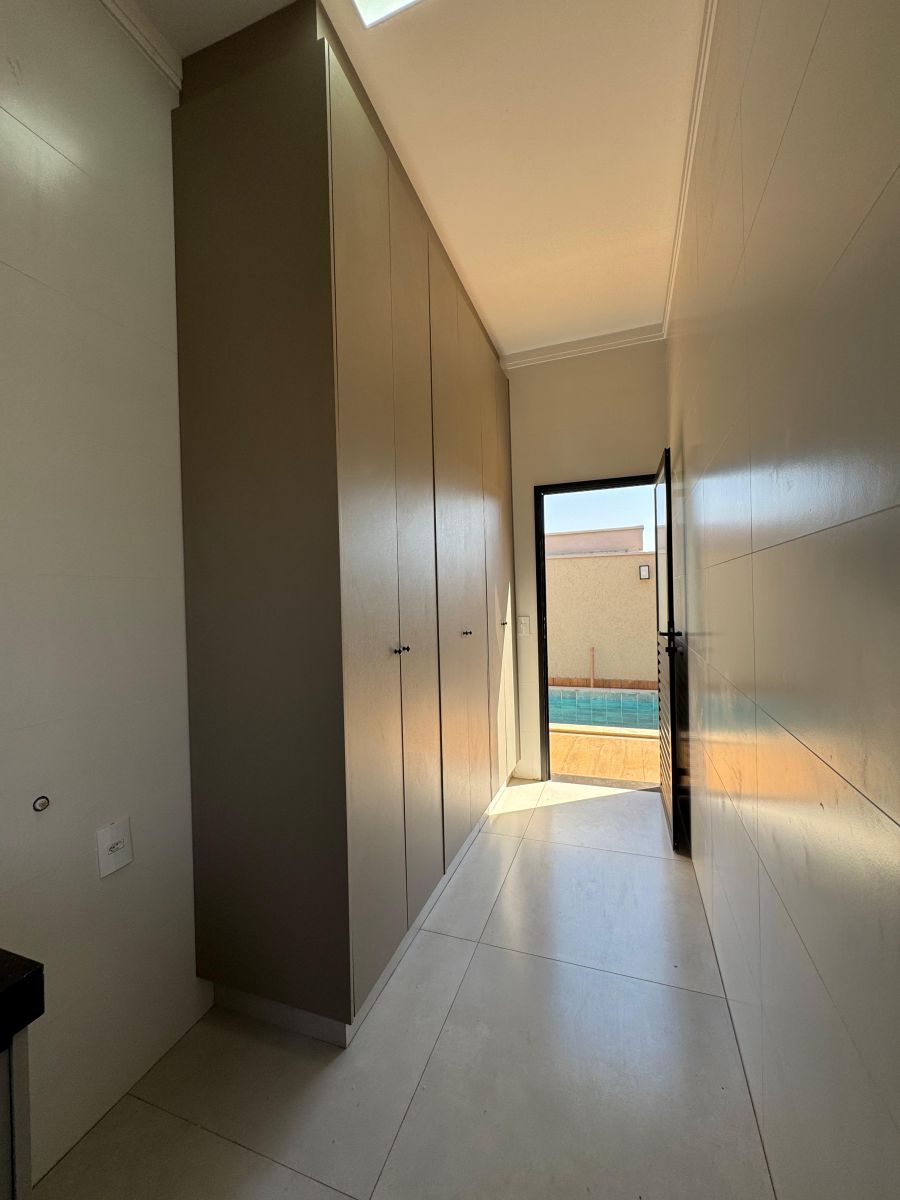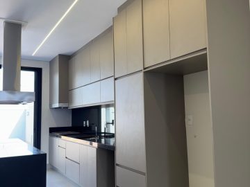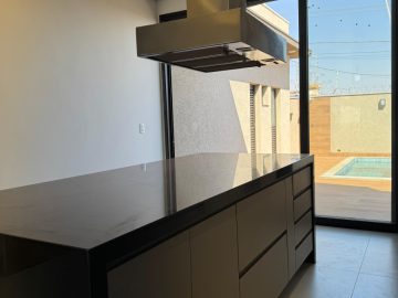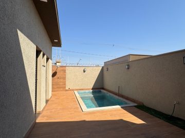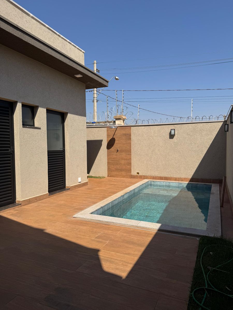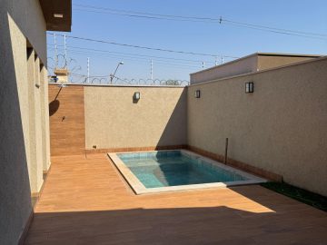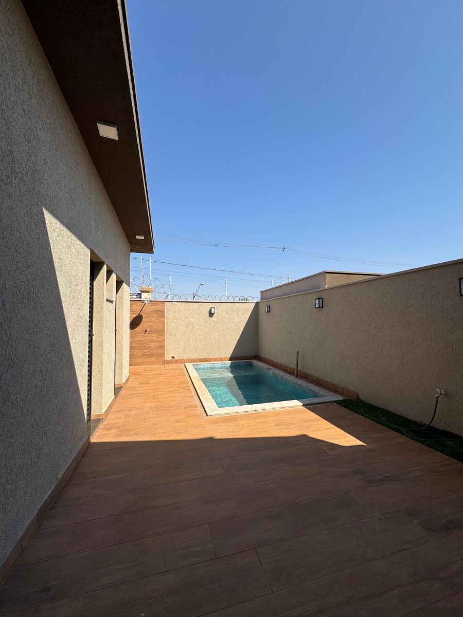 Garagem para 4 carros, sendo 2 cobertas. Sala com pé direito alto integrada a sala de jantar e cozinha gourmet, com ilha e churrasqueira. Escritório. Área de serviço ampla. 3 suítes, sendo a Master com closet e banheiro com cuba e chuveiro duplo. Área externa com solario e piscina com revestimento cerâmico. Vestiário completo. Depósito/despensa.