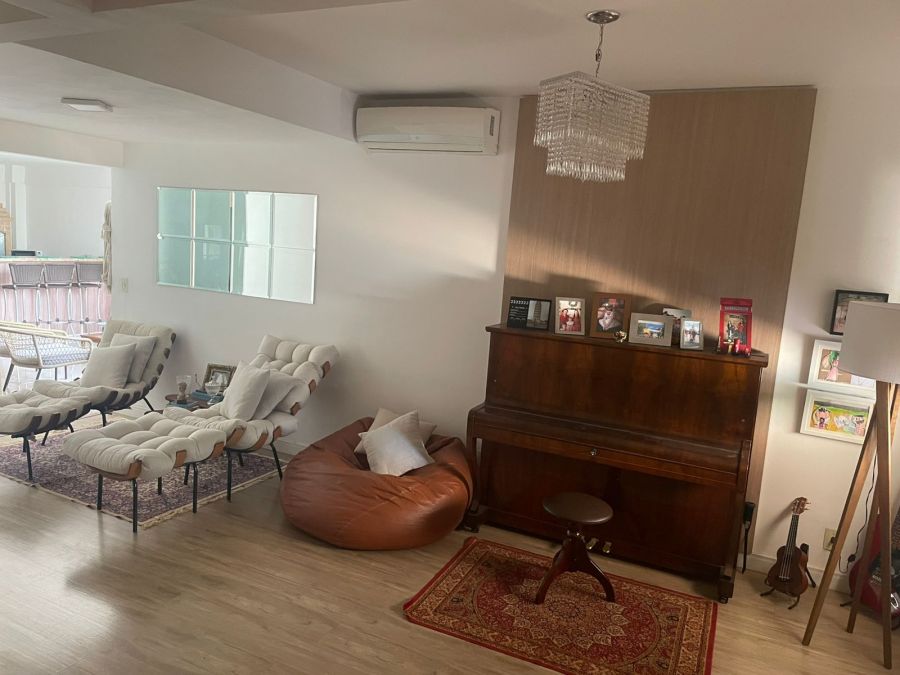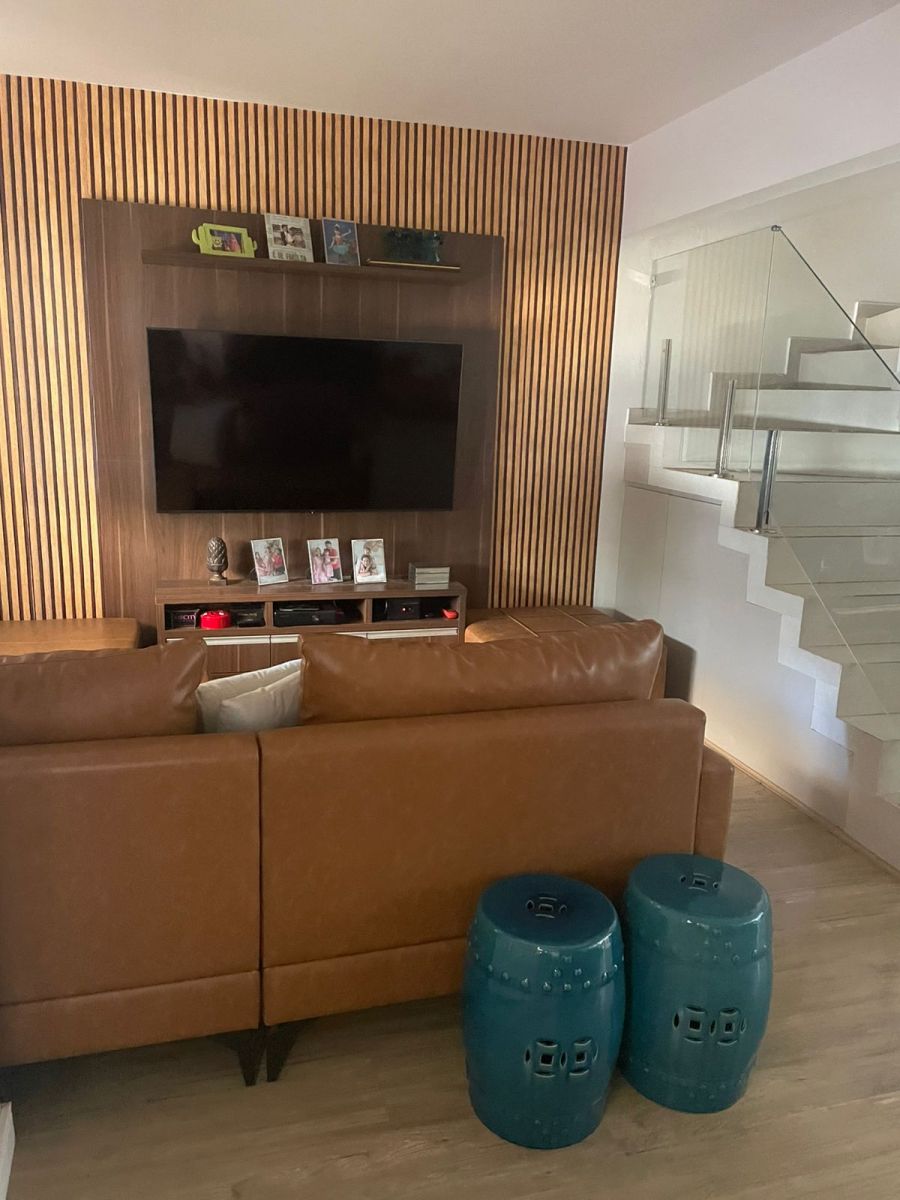 Com 175m² de construção, sendo: 4 dormitórios com 1 suíte (3 piso supeior / 1 piso térreo), ampla sala 3 ambientes, lavabo, cozinha com cooktop, forno e coifa, espaçosa área gourmet com churrasqueira e cooktop. Completa em armários e ar-condicionado. Energia fotovoltaica. 3 vagas, sendo 2 cobertas.