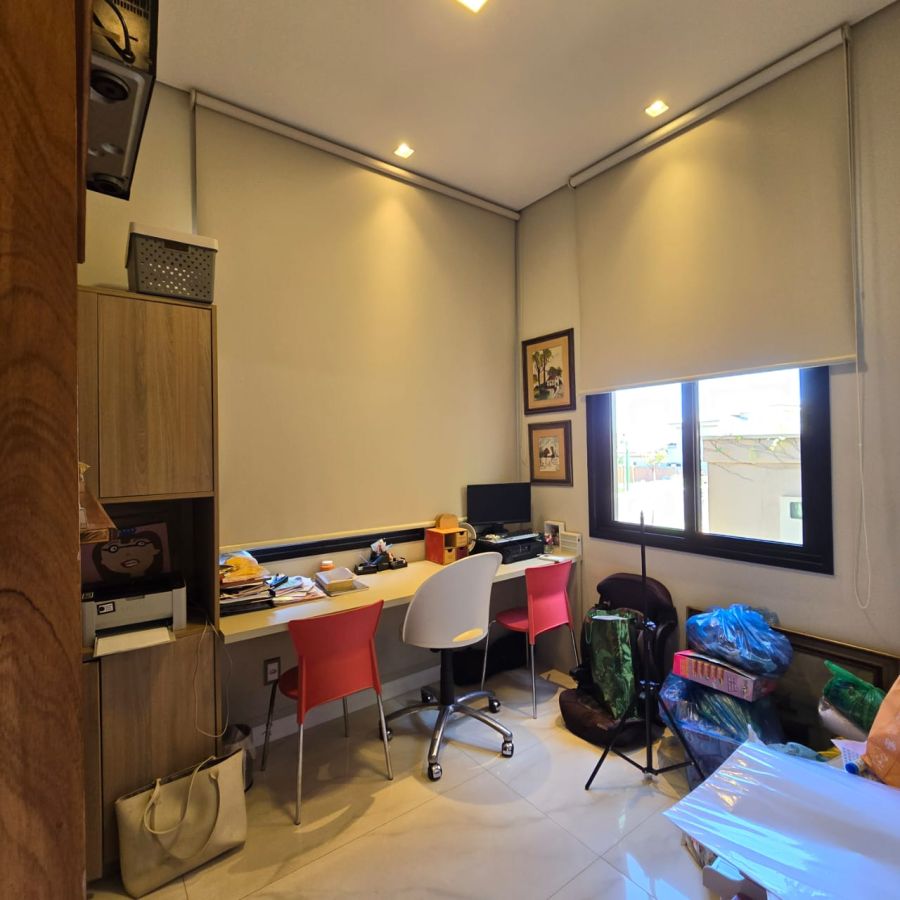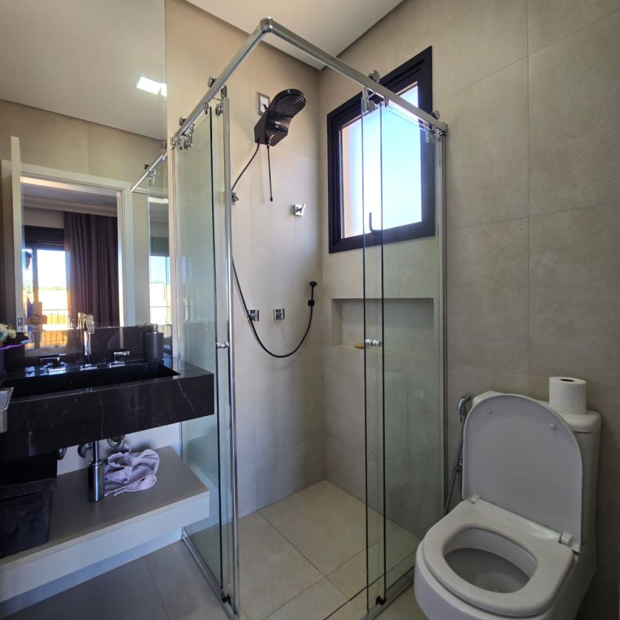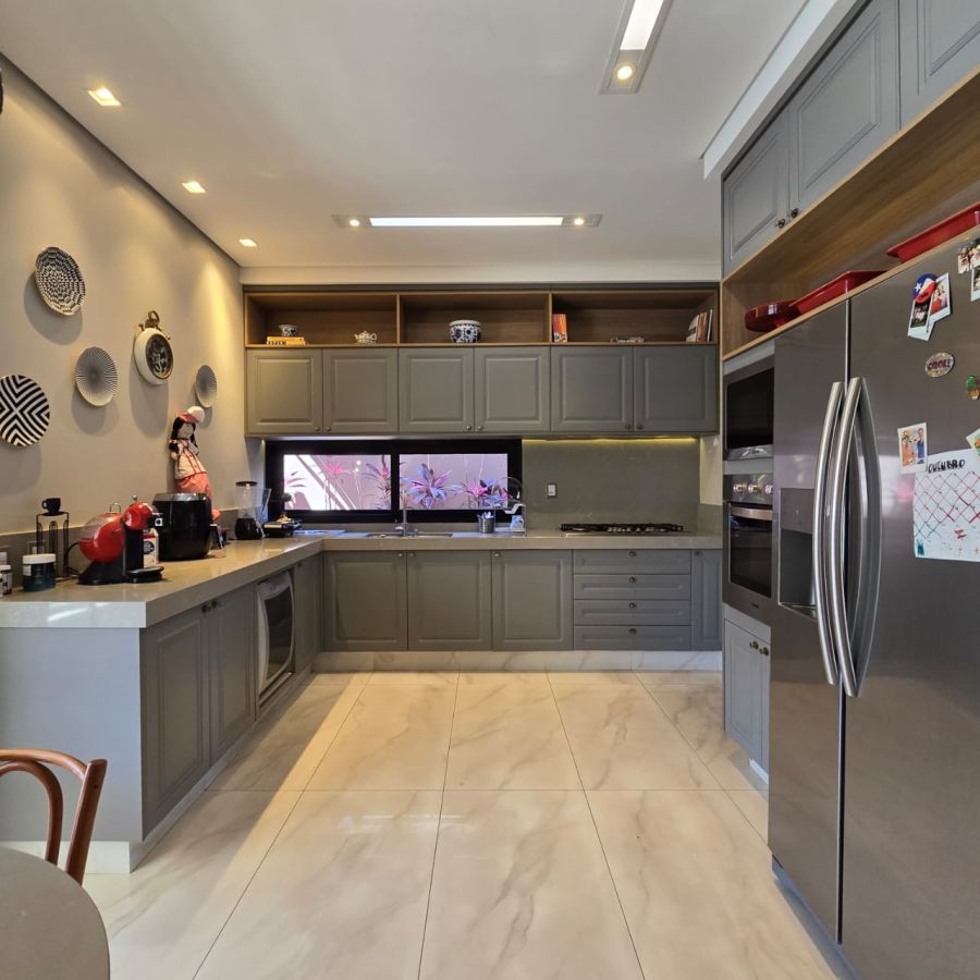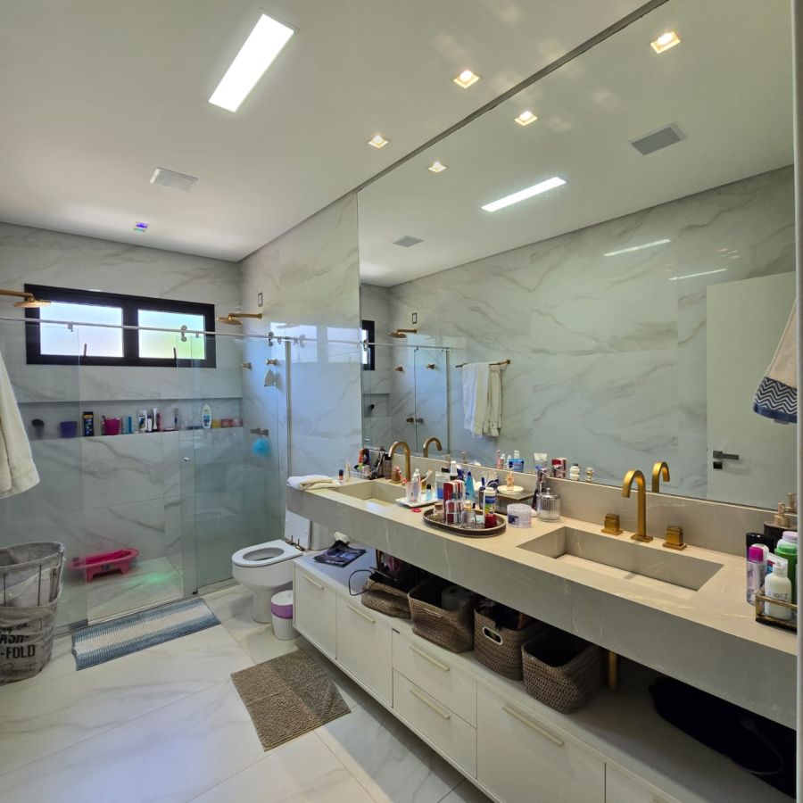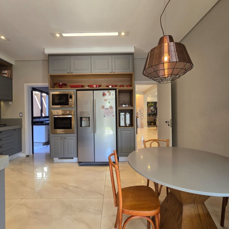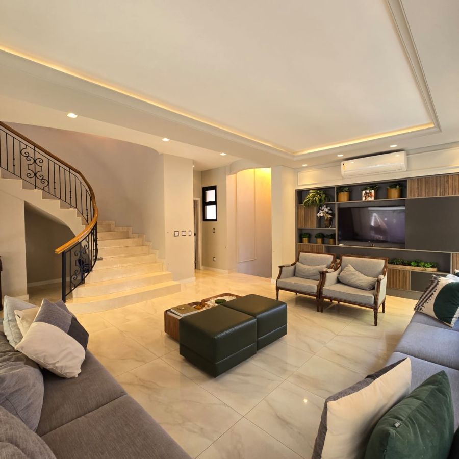 4 vagas na garagem, sendo 2 cobertas. Sala 2 ambientes com pé direito duplo. Home Office. Lavabo. Cozinha separada do gourmet. Área de serviço. 5 suítes, sendo a master com closet, chuveiro duplo, vaso sanitário Carrara e Metais Deca.