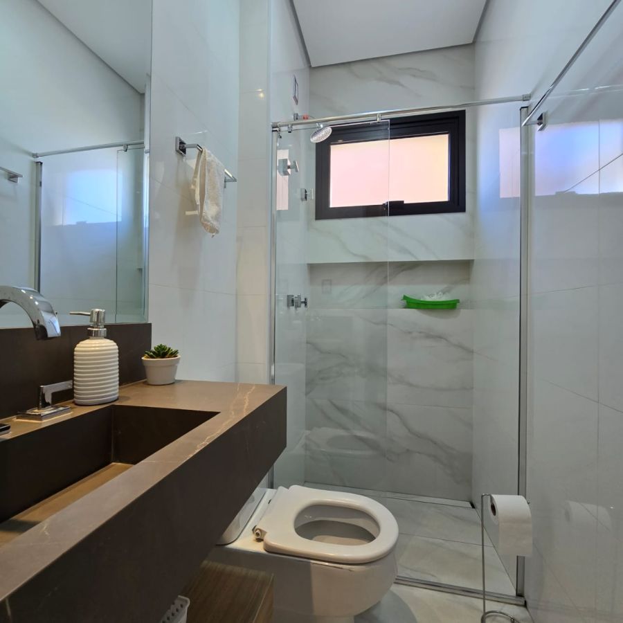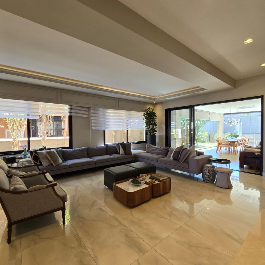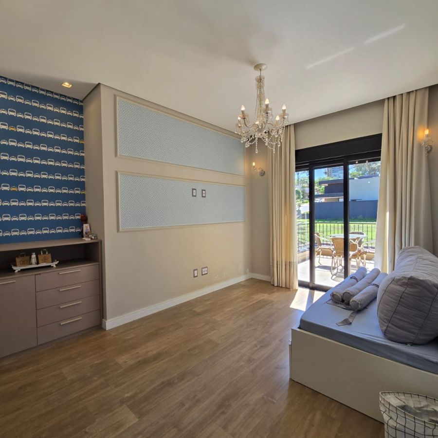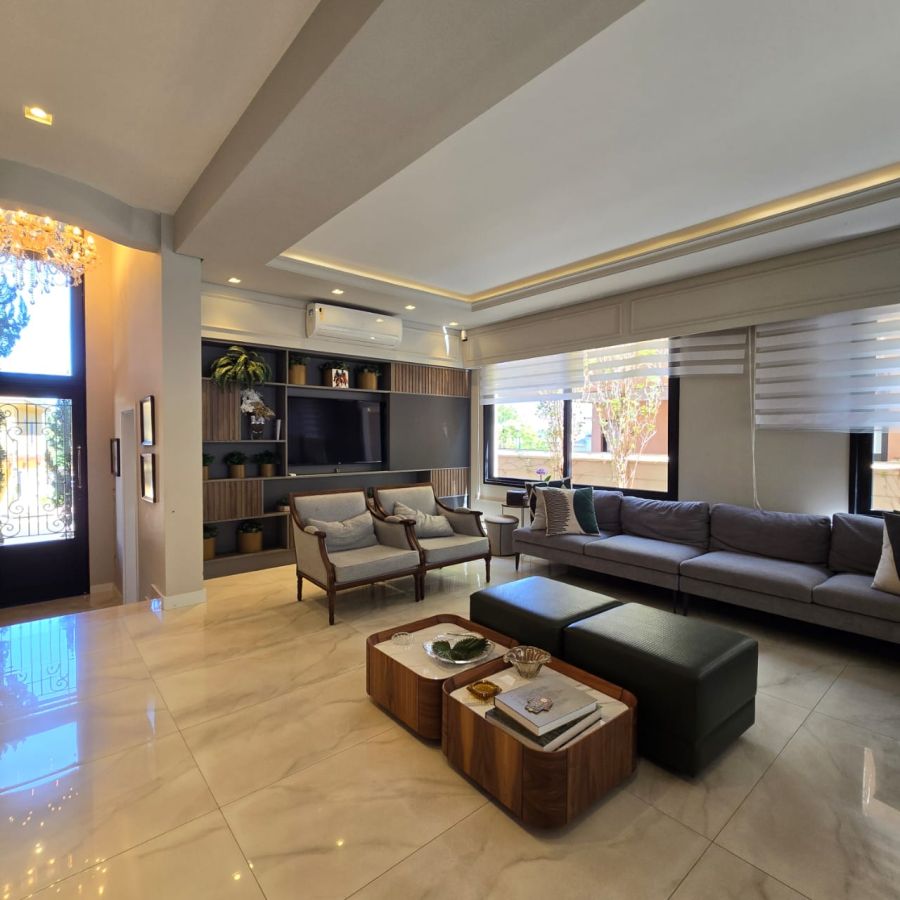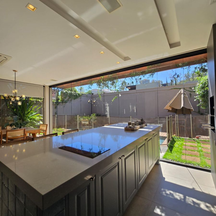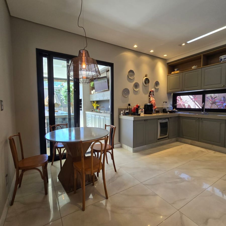 4 vagas na garagem, sendo 2 cobertas. Sala 2 ambientes com pé direito duplo. Home Office. Lavabo. Cozinha separada do gourmet. Área de serviço. 5 suítes, sendo a master com closet, chuveiro duplo, vaso sanitário Carrara e Metais Deca.
