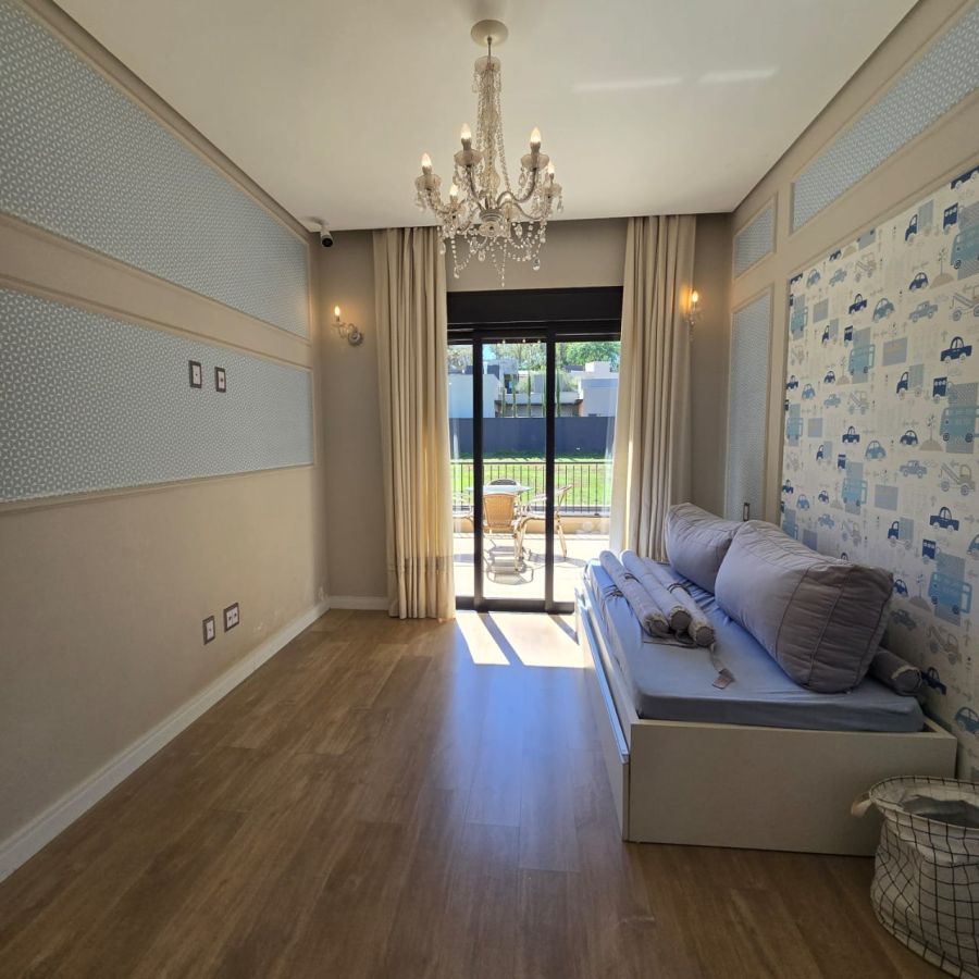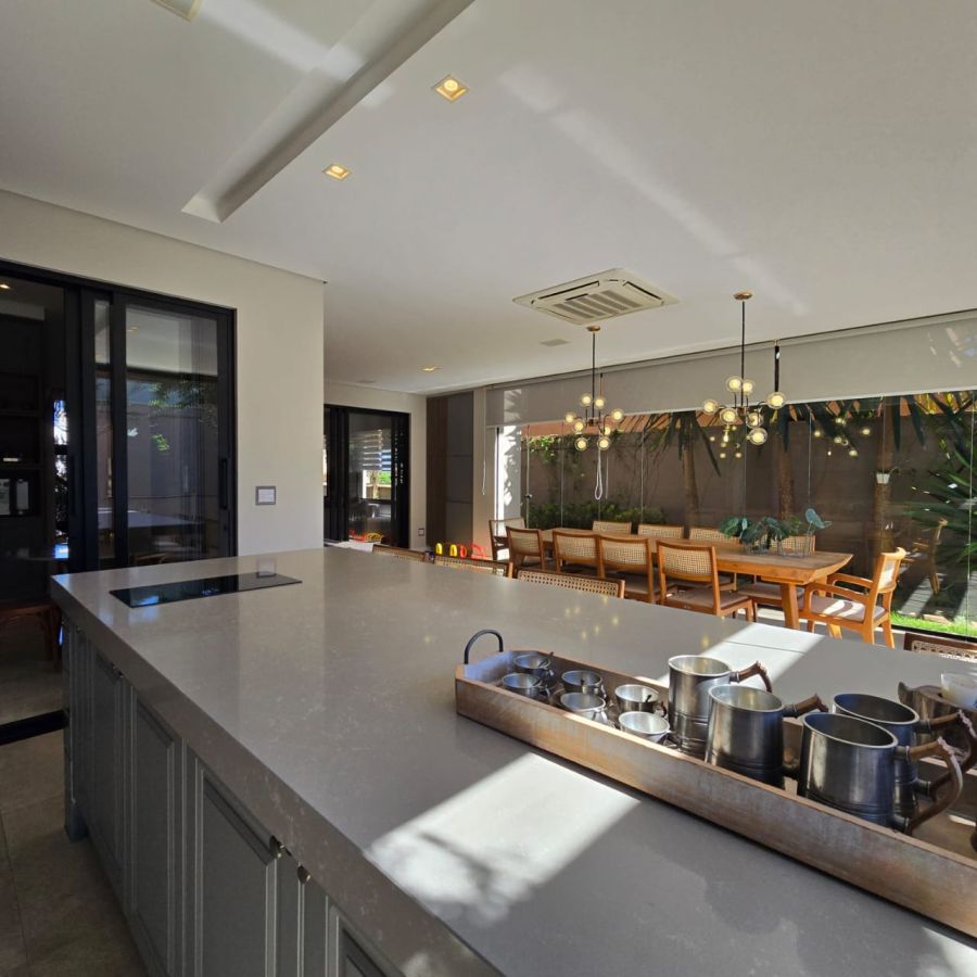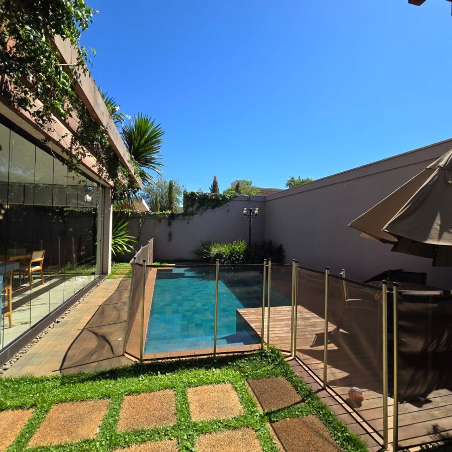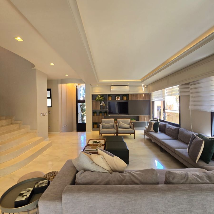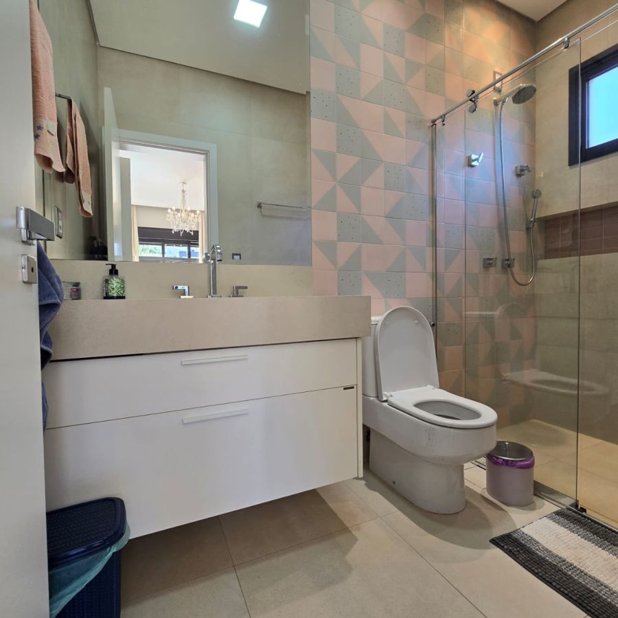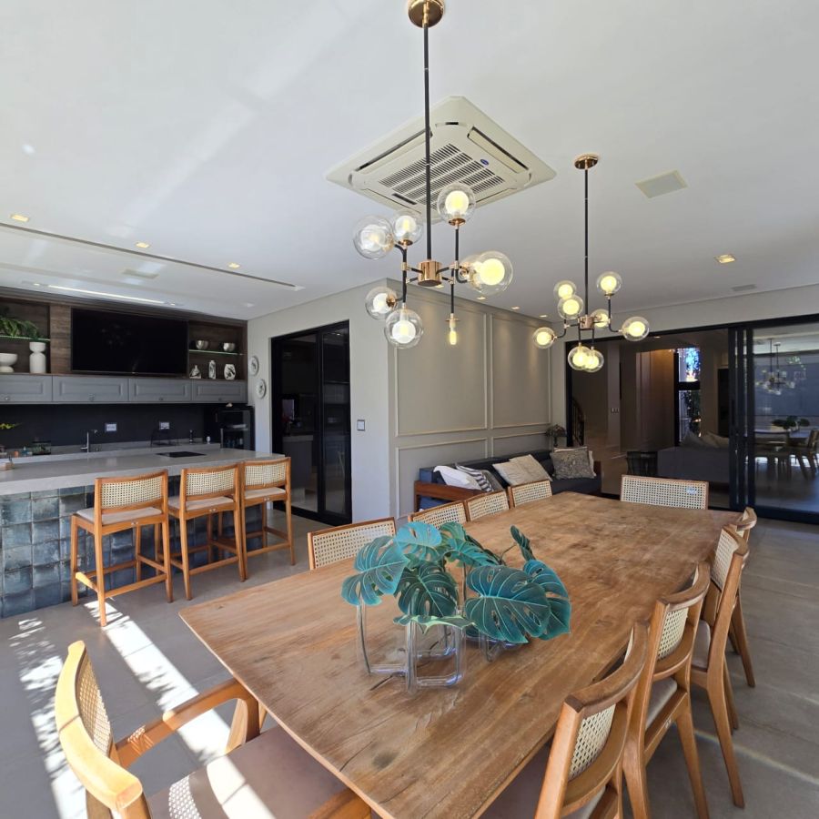 4 vagas na garagem, sendo 2 cobertas. Sala 2 ambientes com pé direito duplo. Home Office. Lavabo. Cozinha separada do gourmet. Área de serviço. 5 suítes, sendo a master com closet, chuveiro duplo, vaso sanitário Carrara e Metais Deca.