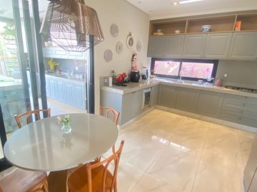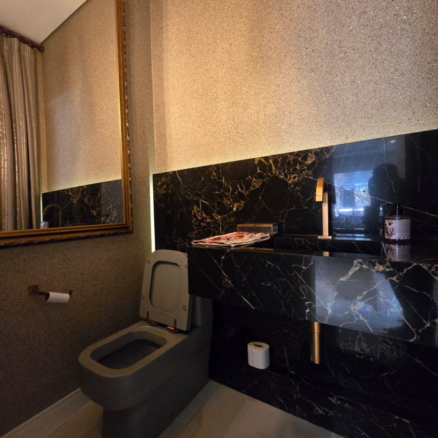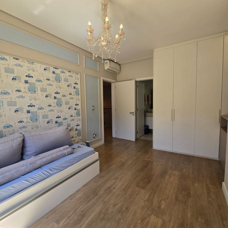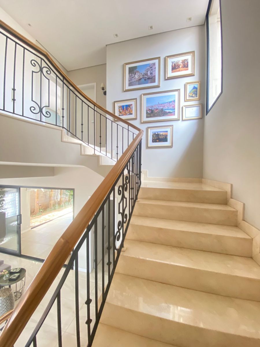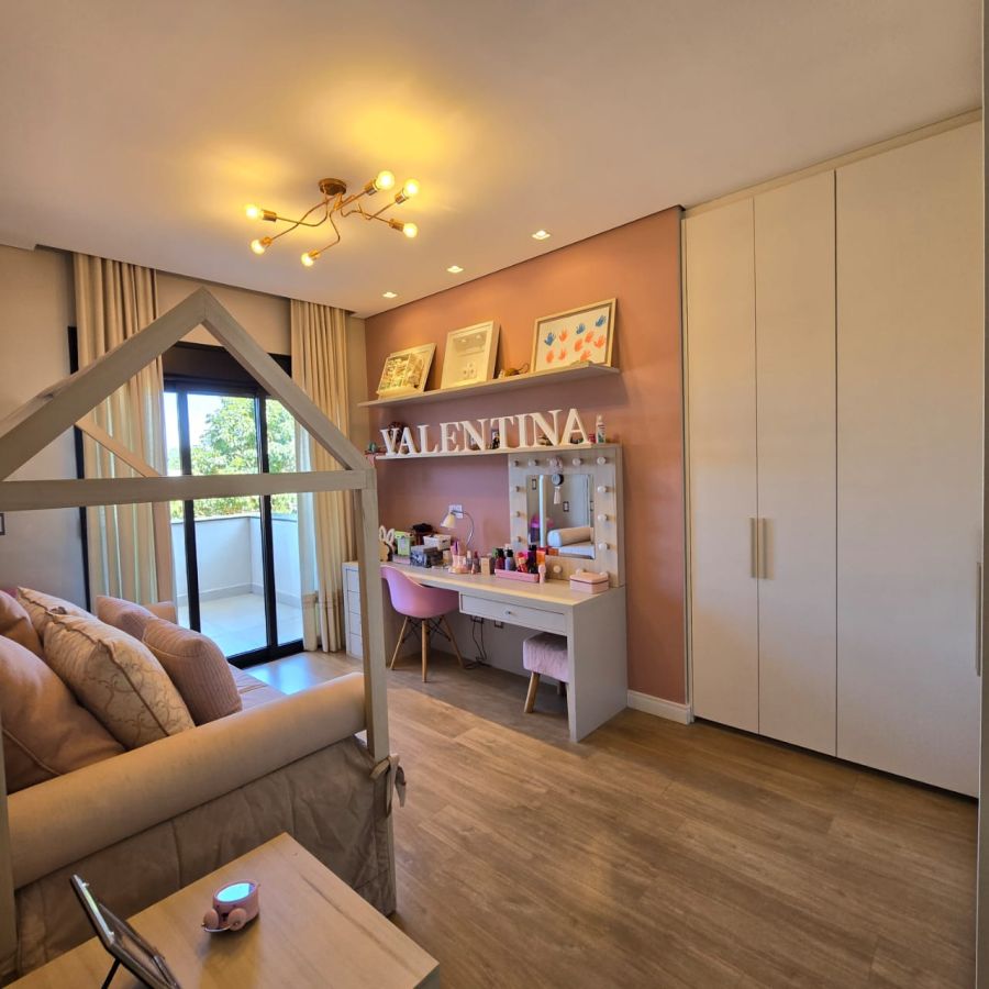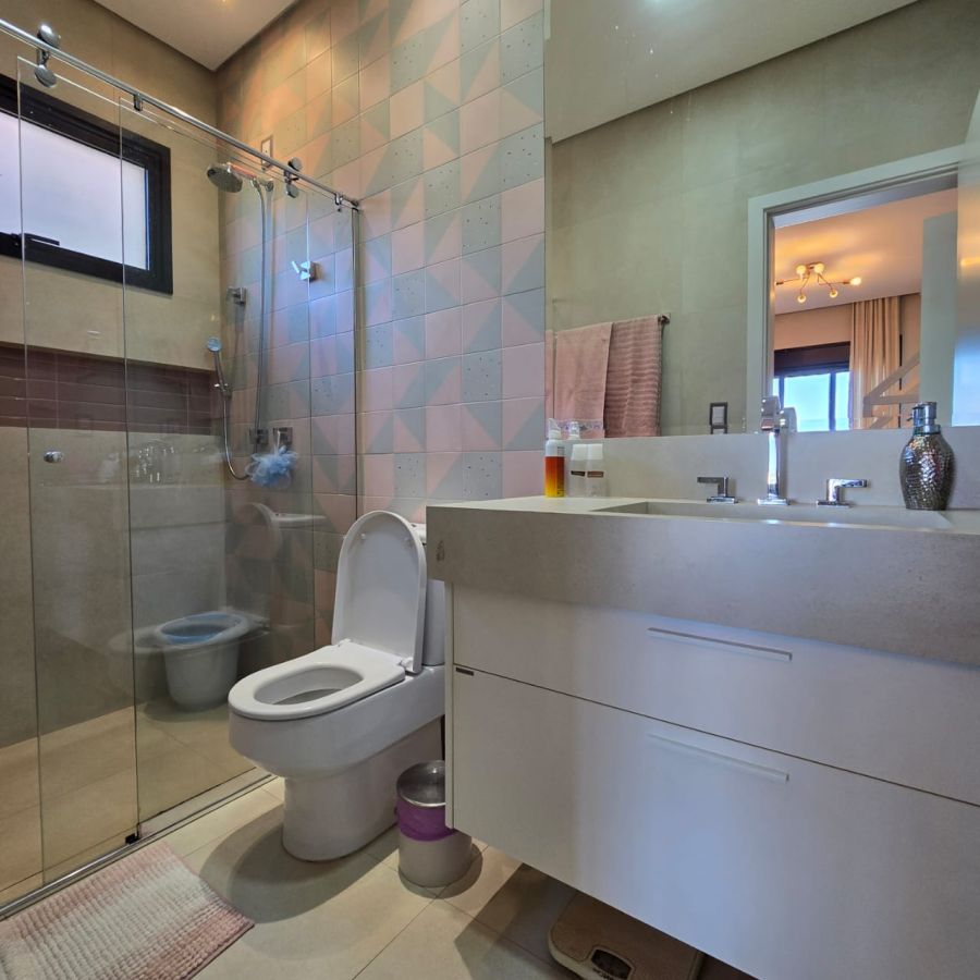 4 vagas na garagem, sendo 2 cobertas. Sala 2 ambientes com pé direito duplo. Home Office. Lavabo. Cozinha separada do gourmet. Área de serviço. 5 suítes, sendo a master com closet, chuveiro duplo, vaso sanitário Carrara e Metais Deca.